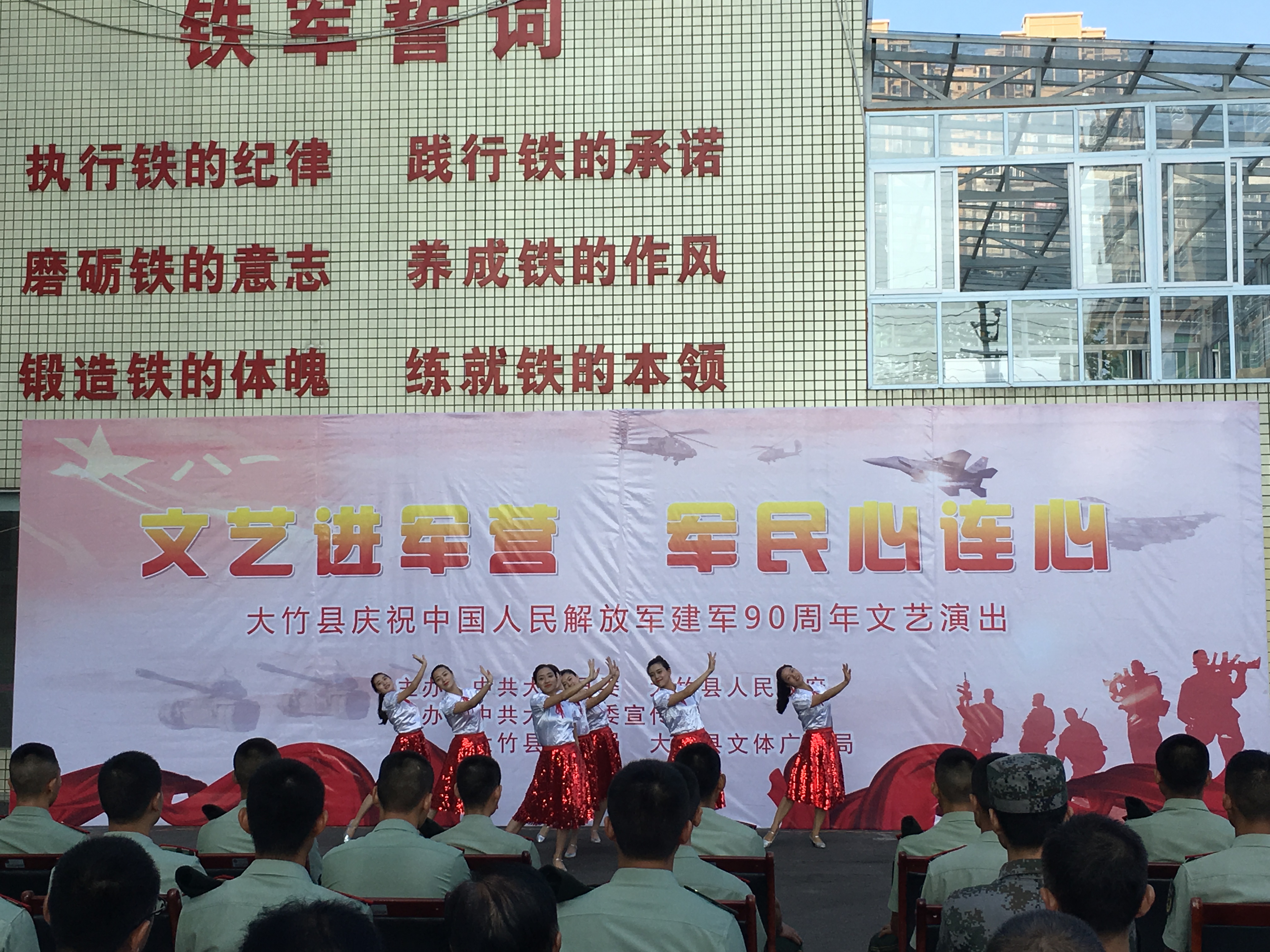 2017年7月27日晚,开江县武警中队灯火璀璨、歌声嘹亮。值“八一”建军节来临之际,开江近千名军民欢聚一堂,回顾人民军队的光辉历史,展望军民团结美好未来,热烈庆祝建军90周年。