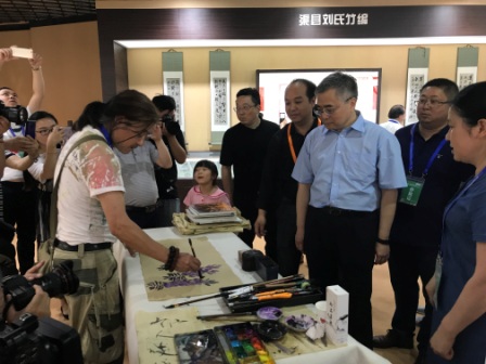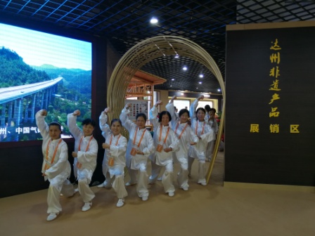截止6月18日闭幕,近10万人次参观了达州非遗馆。达州灯影牛肉、万源巴山雀舍、开江杨板鸭、开江豆笋、宣汉徐鸭子、渠县呷酒、大竹东柳醪糟、大竹观音豆干等非遗项目,现场销售火爆,所带产品销售一空。近300人次体验了蛇难爬消肿散的功效,特别是来自山东的一位参展商现场体验了蛇难爬消肿散后,半小时又带来了10多个外地人,争相体验,收到广大患者的一致好评。来自达州市中心医院的医生还现场为参观者教授了颈椎保健操。来自达州职业技术学院的杨国志老师现场用黄麻纸为大家表演写字、作画。