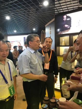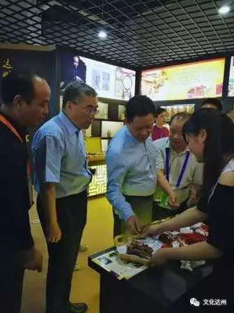 6月11日上午,文化部副部长项兆伦、四川省政府副省长杨兴平等领导在省文化厅副厅长窦唯平的陪同下来到达州非遗馆巡馆。项副部长、杨副省长先后参观了徐鸭子传统加工技艺、渠县呷酒酿造技艺、东柳醪糟酿造技艺、黄麻纸制作技艺、渠县刘氏竹编、蛇难爬消肿散等展示展销项目,并品赏和体验,仔细询问传承情况。