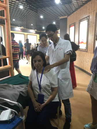 开幕式结束后,参加开幕式的联合国教科文组织、国内外的领导和嘉宾相继到达州非遗展馆参观,一位不知姓名的国外非遗官员现场体验了达州非遗馆的中医推拿手法。