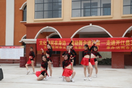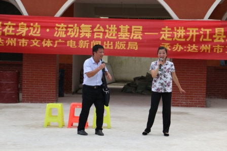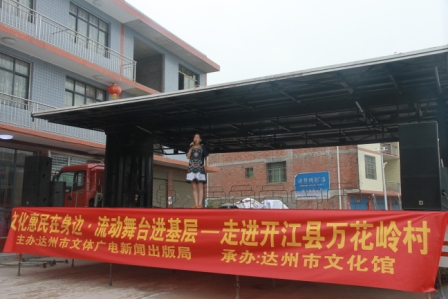 晨风微吹花芬芳,清新世界郁芳香。2017年6月20日,在这风和日丽、万里无云的一天,迎来了由达州市文体广电新闻出版局主办、达州市文化馆承办的“文化惠民在身边·流动舞台进基层”文艺演出活动在开江县万花岭村、五里桥村的顺利进行。