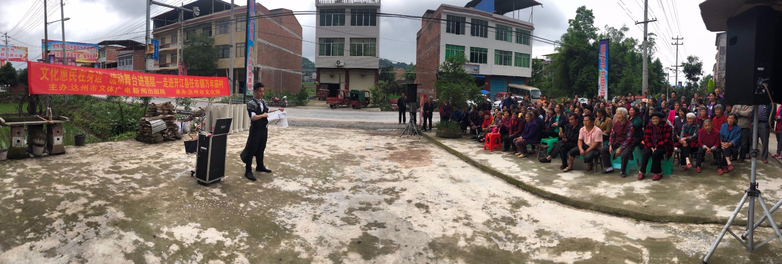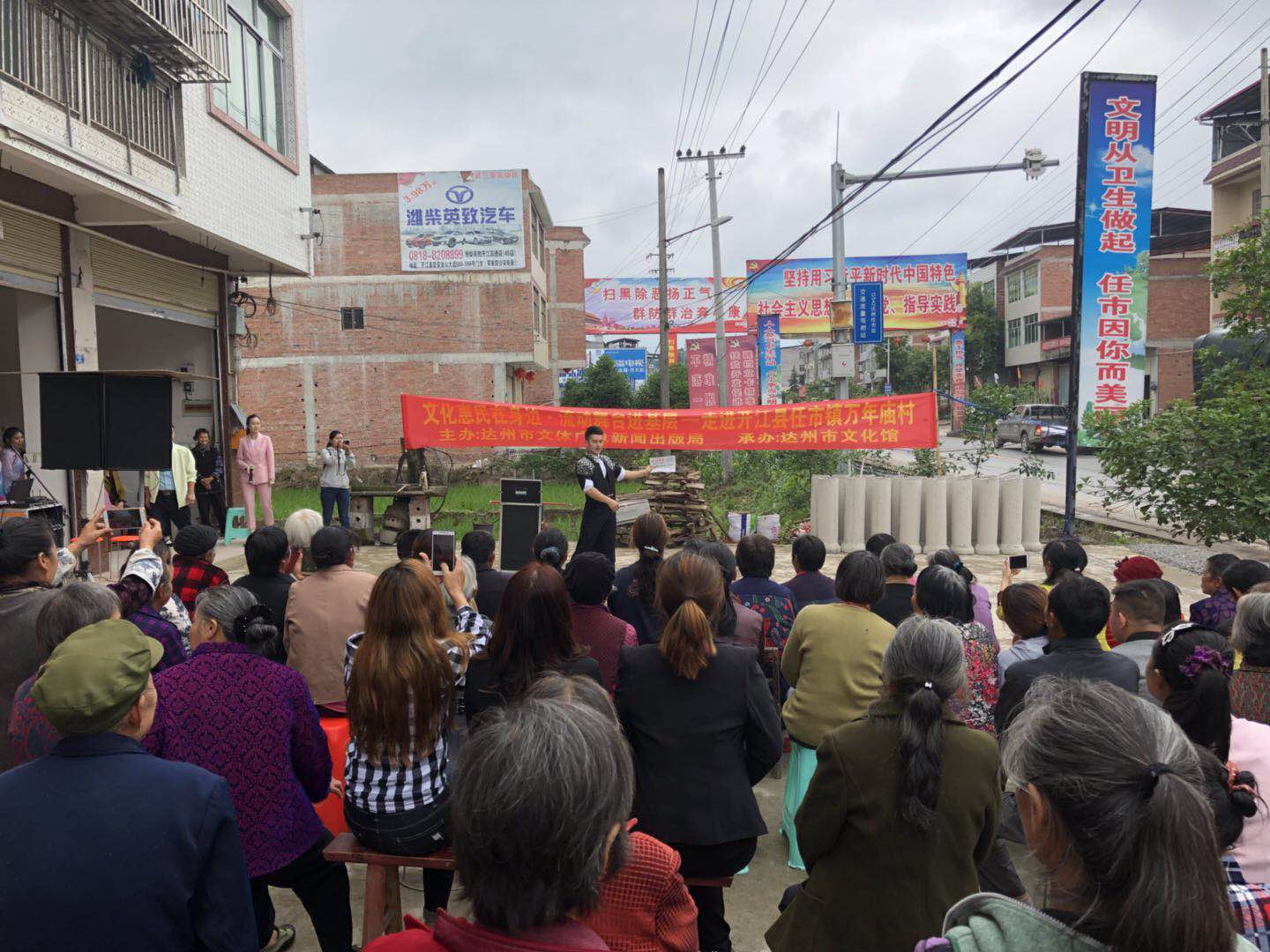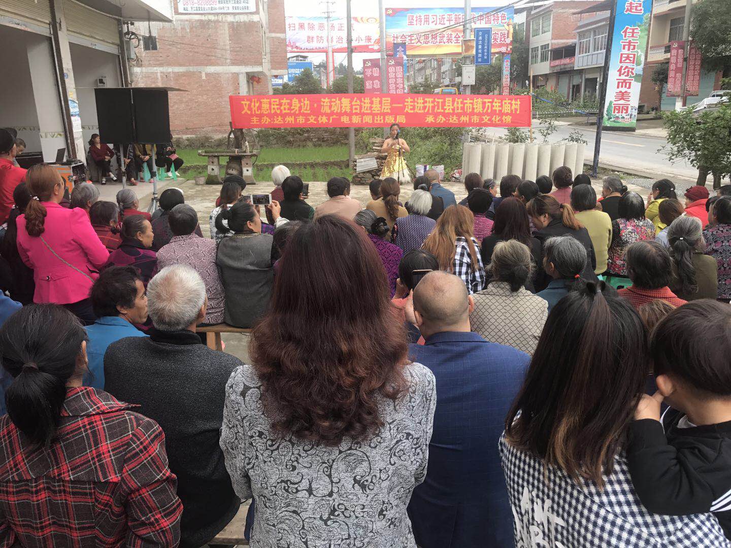 为认真贯彻落实十九大精神,深入开展“大学习、大讨论、大调研”活动,进一步丰富群众精神文化生活,5月11日一早,达州市文化馆组织巴山文艺帐篷轻骑队和巴山蒲公英文化志愿者服务团走进了开江县任市镇万年庙村,把老百姓最喜欢的节目送到了田间地头、送进了村庄院坝,为村民们带去了丰富的文化大餐。