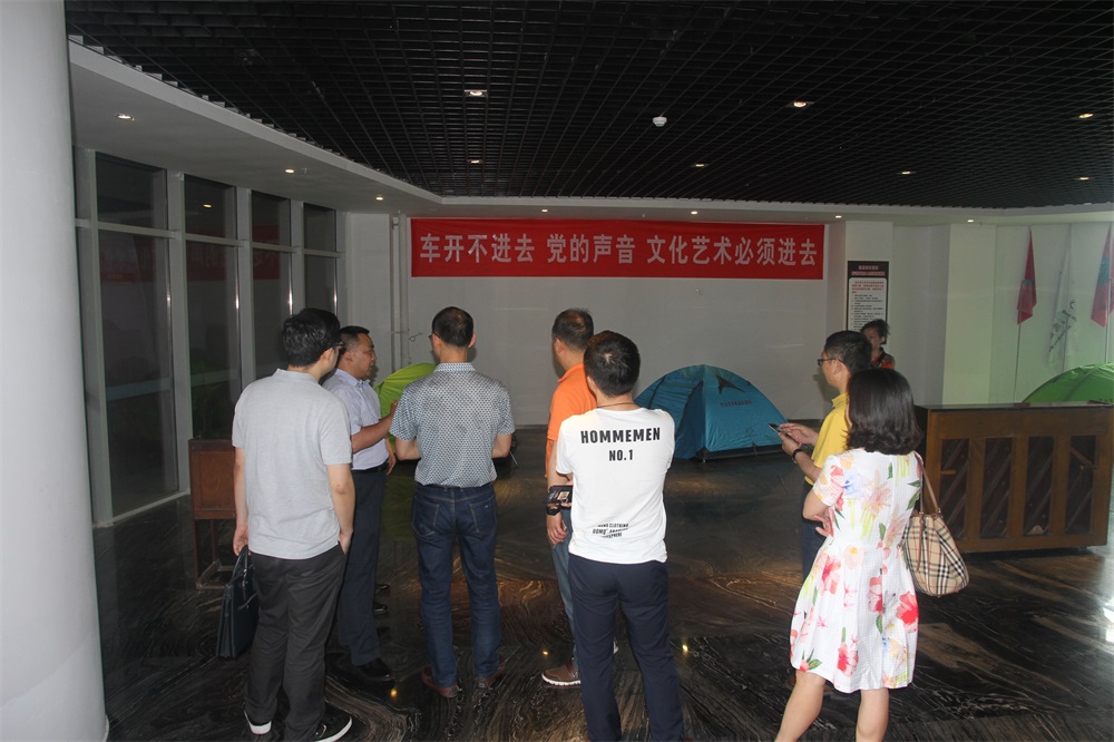 联合调研组一行先后调研了声乐排练厅、舞蹈排练厅、美术书法摄影展厅、非遗展厅、摄影棚、党建办公室、党员活动室、数字展厅和业务部室等。
