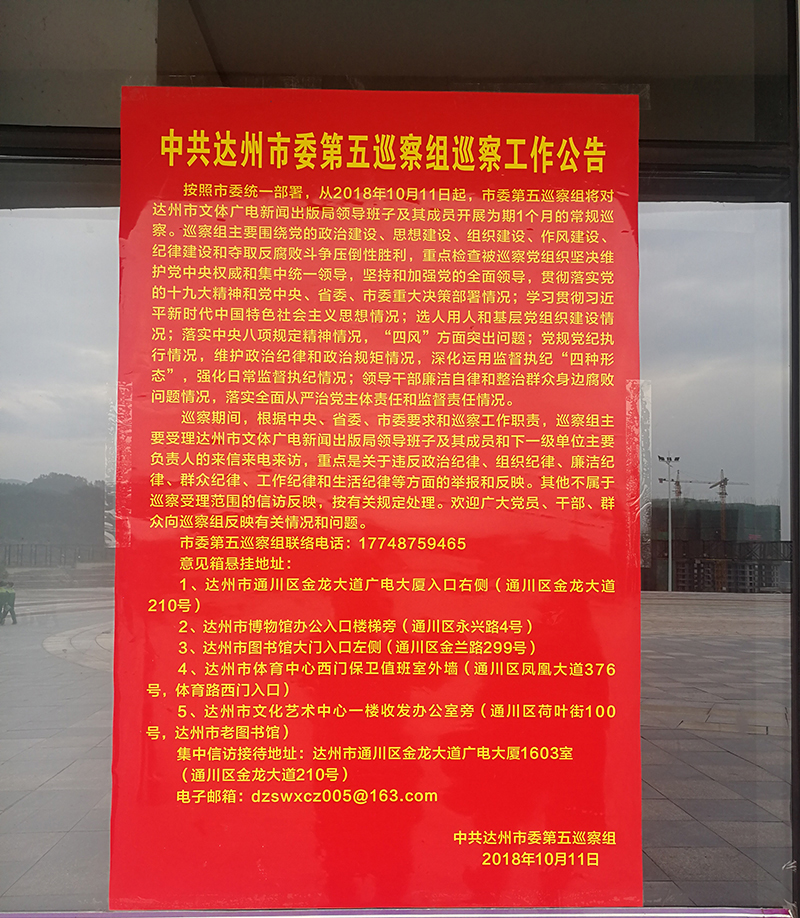 通过再动员再教育,全馆干部职工深刻认识到,第五巡察组是对文体广新系统政治生态的“全面扫描”,要正视工作中的差距和不足,勇于直面问题、深入解决问题。以巡察为契机,进一步推进党风廉政建设,切实把党的纪律和规矩严起来。要针对巡察过程中发现的问题、存在的不足和薄弱环节,精心制定整改措施,做到边巡察、边整改、边提高;对巡察组提出的整改建议,认真研究,件件有答复,事事有回音,把配合巡察工作同推进全年工作任务落实有机结合,“两手抓、两不误”,真正把巡察整改成果转化为促进达州群众文化发展的强大动力。