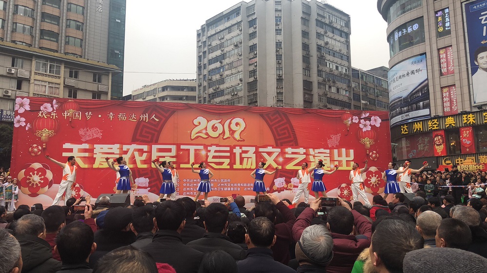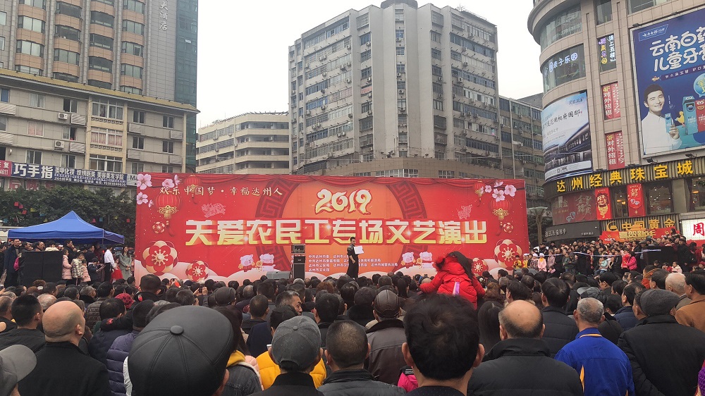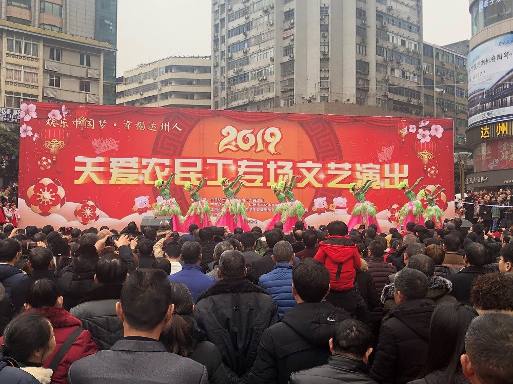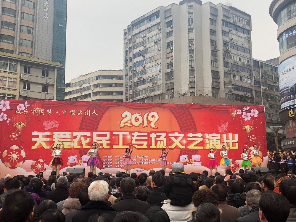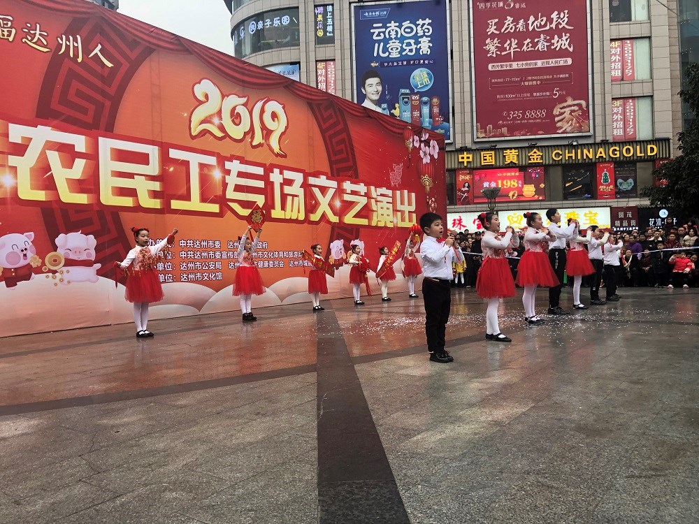2019年2月7日(正月初三)下午,由中共达州市委、达州市人民政府主办,中共达州市委宣传部、市文化体育和旅游局承办,市公安局、市卫生健康委员会、市城管执法局协办,市文化馆演出的“欢乐中国梦·幸福达州人”2019关爱农民工专场文艺演出活动在中心广场举行。