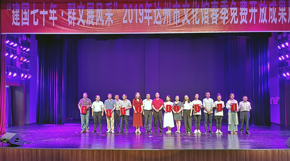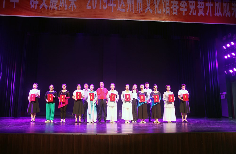 7月5日,达州市文化馆举行2019年春季免费开放成果展演,来自春季培训的舞蹈班、朗诵班、合唱班、美术班、书法班、摄影班、仪态班300余人,及18个优秀的舞台艺术节目、69幅优秀的视觉艺作品参加汇报展演,并对优秀教师和优秀学员进行表彰,市文化体育和旅游局副局长曾军、市财政局教科文科主任杨晓宇、市文化体育和旅游局公共文化科科长任华明、副科长王鸣、市文化馆馆长徐殿乾、书记鲜林宗、副书记吴胜参加颁奖仪式。表彰名单如下: