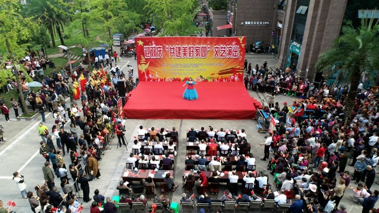 为喜迎国庆、中秋双节,2020年9月29日,渠江街道万兴社区“结对联创”单位在科华首座前广场开展“迎双庆——共建美好家园”文艺演出活动。