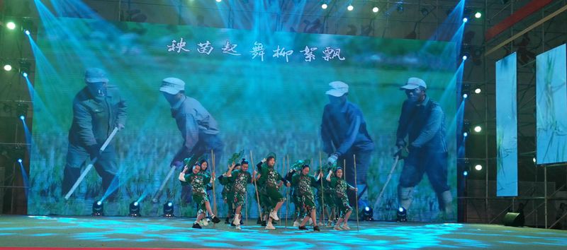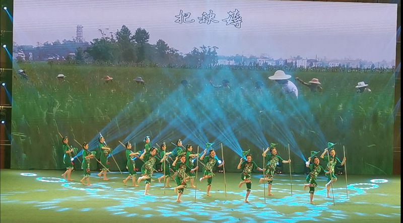开江县选送的《薅秧妞妞》代表达州市参与了该次展演活动。《薅秧妞妞》是根据省级非遗《薅秧歌》创作的广场舞。姑娘们头戴斗笠,手持薅秧棍,用自己得体优美的舞姿再现了当年水田薅秧时欢歌笑语、热火朝天的劳动场景,同时展现了“川东小平原”稻田联片、秧苗繁茂、丰收在望的喜人景象。这群青春靓丽的薅秧妞妞随着动人的旋律,用热情奔放的舞姿征服了观众,现场不时爆发出阵阵掌声。