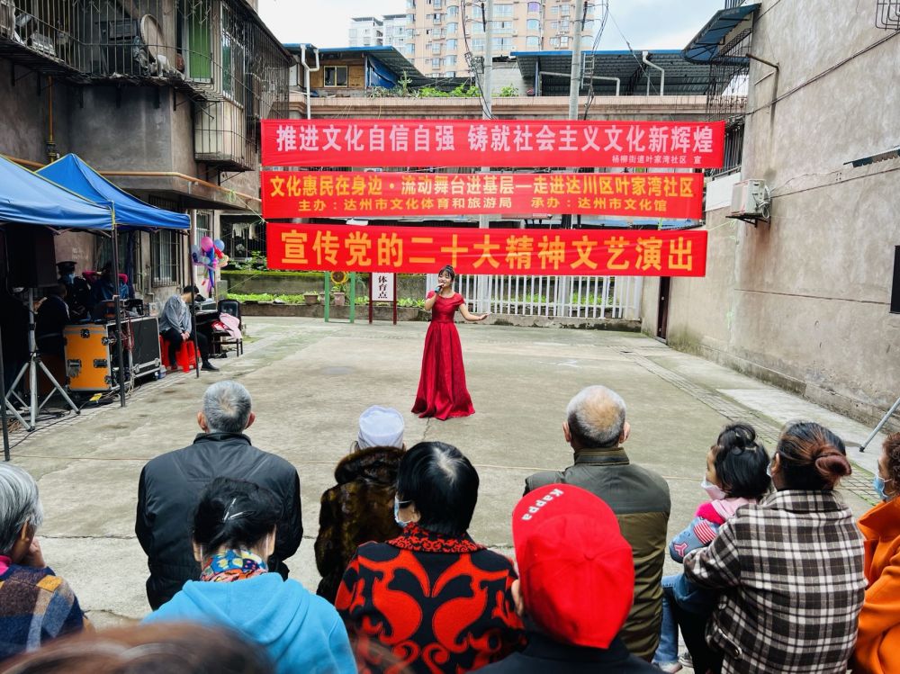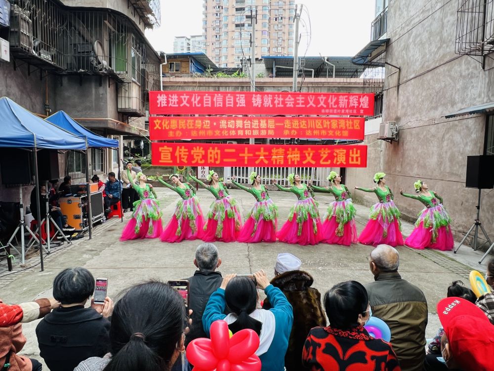 10月28日,由达州市文化体育和旅游局主办,达州市文化馆承办的“文化惠民在身边·流动舞台进基层”暨达州市文化馆全民艺术普及“流动讲堂”进基层系列文化惠民活动走进达川区叶家湾社区,推动党的二十大精神走进基层走进群众,转化为团结奋斗的实际行动和工作成效,通过文化自信汇聚起基层群众加快建设现代化达州的磅礴力量。