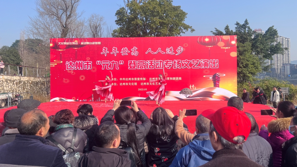 2023年伊始精彩不断,为持续营造喜庆祥和的新年氛围,满足市民朋友春节期间精神文化需求,1月30日(正月初九),由中共达州市委宣传部、达州市文化体育和旅游局主办的“2023年元九登高节专场文艺演出”在塔坨滨河湿地公园精彩上演,达州市文化馆围绕“年年登高·人人进步”为活动主题,精心“烹饪”文化“大餐”,让广大群众热热闹闹的过了一个“元九登高节”!