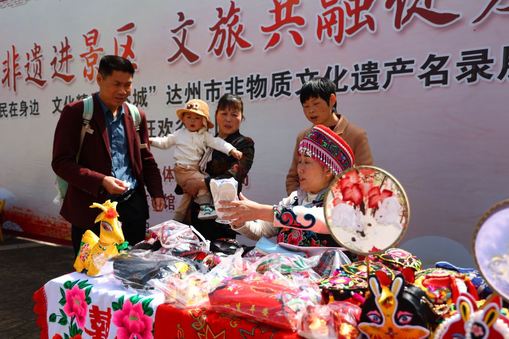 达州市文化馆为积极响应文旅融合新形势,进一步落实文化与景区融合发展的举措,4月29日,在人头攒动的月湖狂欢谷景区,由达州市文化体育和旅游局主办、达州市文化馆承办的“‘五一’非遗进景区 文旅共融促发展”活动,为广大游客送上了一道丰盛的非物质文化遗产盛宴。