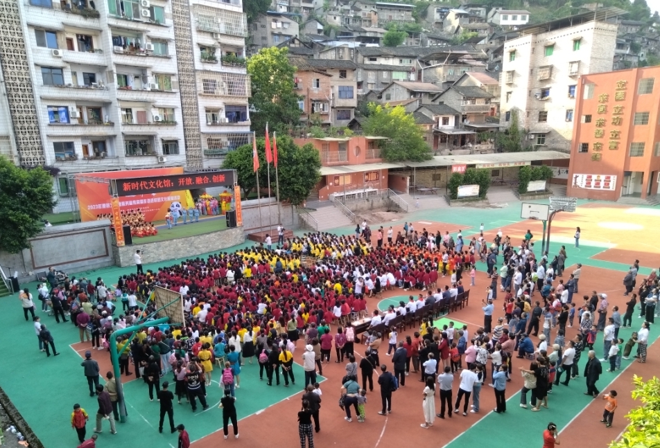 为深入贯彻落实党的二十大精神和习近平总书记关于公共文化建设重要论述精神,发挥文化馆弘扬社会主义核心价值观主阵地作用,开展好艺术普及和非遗等优秀传统文化传承活动,提高公众对文化馆系列活动的知晓度和参与度,2023年5月24日“安逸学艺”——渠县文化馆2023年服务宣传周非遗进校园文化展演活动在渠县三汇镇第一小学成功举办。渠县文化馆干部职工和渠县三汇镇第一小学师生1000余人参加了此次活动。