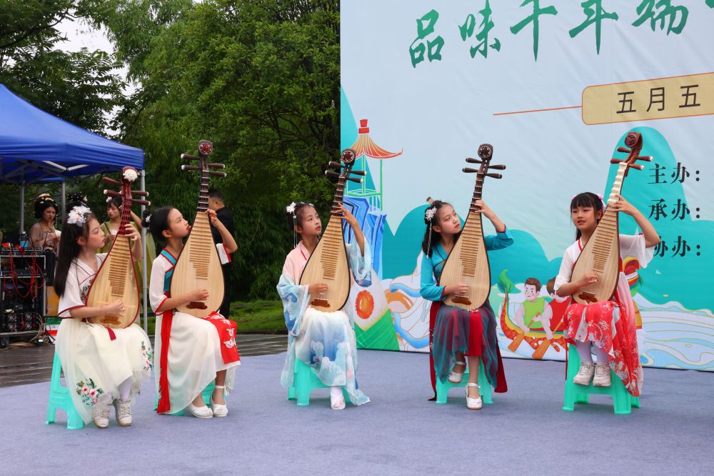 在欢乐祥和的端午文化氛围中,大家以饱满的热情和旺盛的精力积极投入到活动中。古筝齐奏《我的祖国》、诗经诵读《蒹葭》《关雎》《桃夭》《鹿鸣》、舞蹈《采薇》《国风舞韵》、女独《在水一方》、琵琶齐奏《踏山河》等一系列节目精彩纷呈。