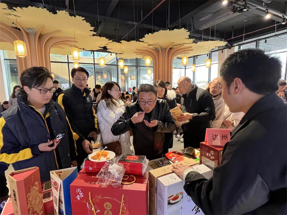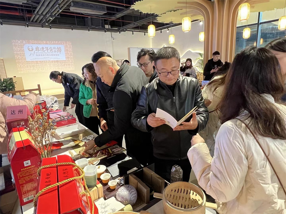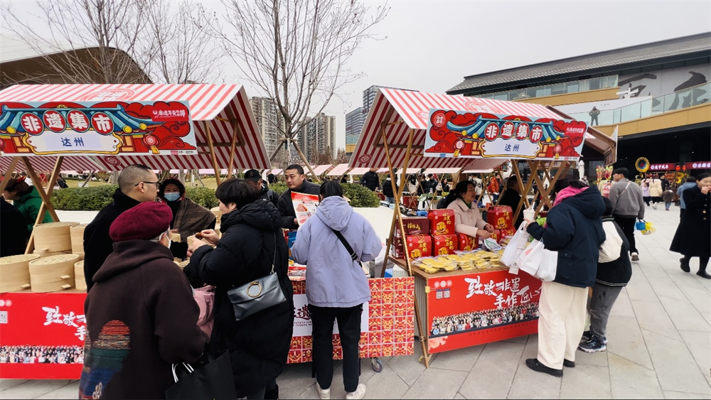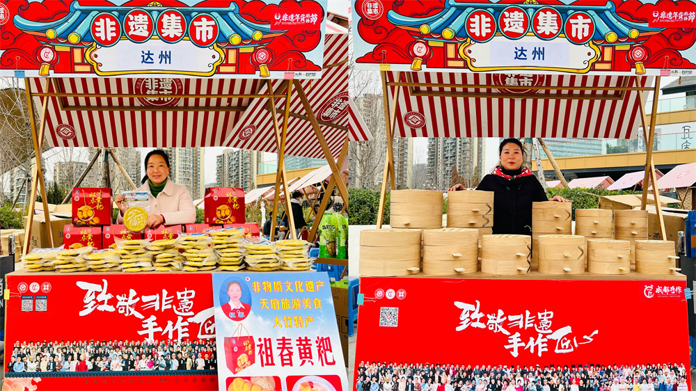 12月16日-17日达州非遗商品:百年灯影、燕氏竹编蒸笼、大竹祖春黄粑、渠县黄花、渠县呷酒在天府艺术公园非遗集市进行了线下摆摊销售。非遗传承人纷纷拿出自己的“绝活”,演示传统非遗技艺,令人大开眼界。非遗集市是由21个市(州)近60项传统技艺、传统美食类非遗项目汇集展示展销。为市民和游客朋友们呈现了一场可逛、可赏、可尝、可体验的非遗盛宴。