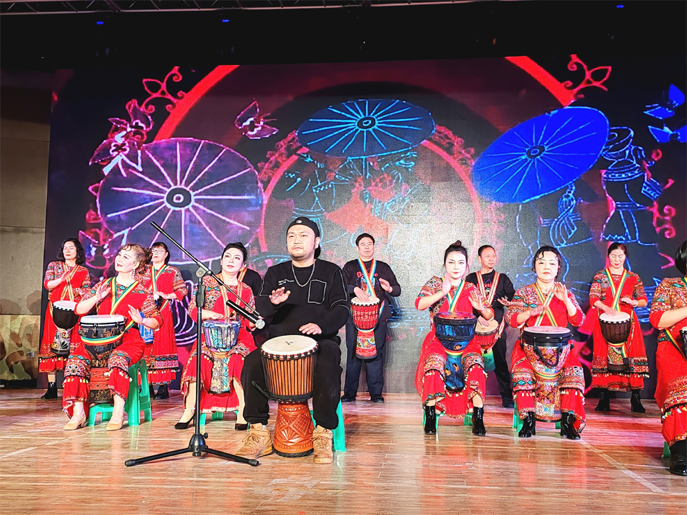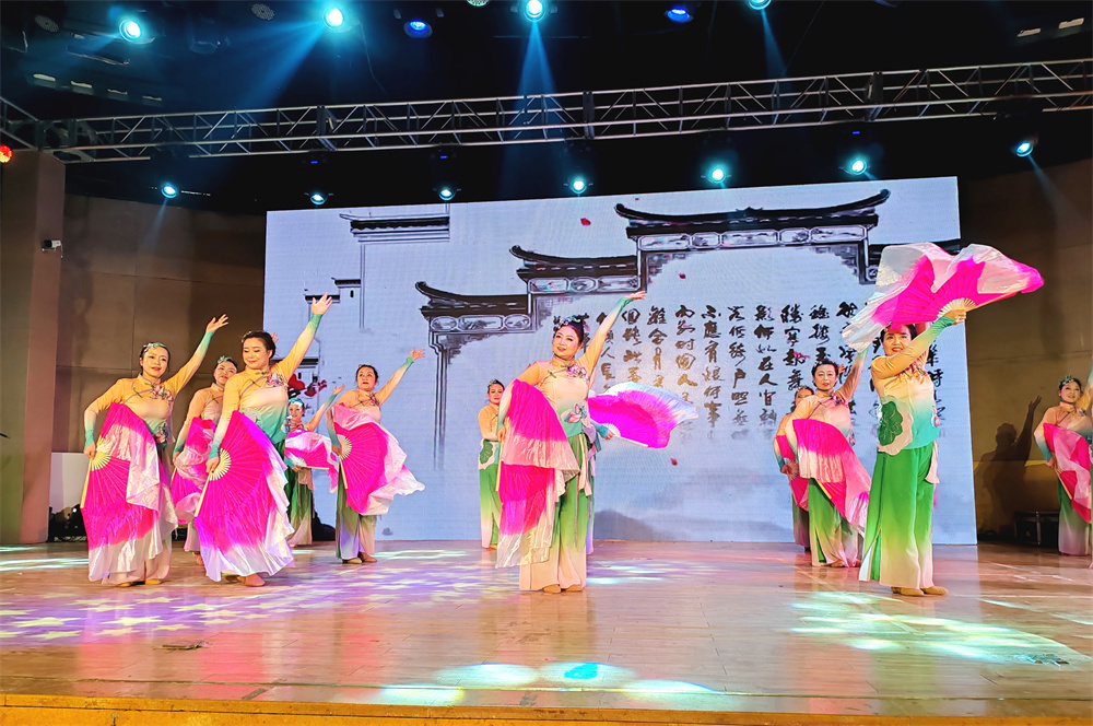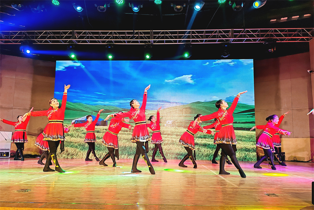 汇报演出在大歌舞《盛世欢歌》的激情旋律中拉开帷幕。杨柳社区舞蹈六班表演的《最美中国》、舞蹈五班学员表演的《党旗》展现了站在历史新起点的文化工作者“敢叫日月换新天”的家国情怀与责任担当;通达社区合唱班《走向复兴 》、体育馆合唱班《绒花》等歌曲表达了为实现民族复兴的伟大中国梦而排除万难、奋发有为的精神风貌;舞蹈二班表演的《青城山下》、舞蹈四班表演的《亚丽古娜》展现了老百姓对美好生活的无限憧憬与向往。独具异域风情的非洲鼓表演、在生活的韵律中感受灵魂跃动的瑜伽表演、让气质与思想得以更深层次修炼的形体礼仪、传承优秀传统文化的国学诵读、少儿书法班轮番上演,本次汇演在欢快的舞蹈《相亲相爱》的精彩演绎中落下帷幕。14个班级的学员们以灵巧的动作、优美的舞姿和扎实的基本功表演了他们精心准备的节目,全面展示了他们在四个月培训中的学习成果,现场演出掌声雷动,气氛十分热烈。