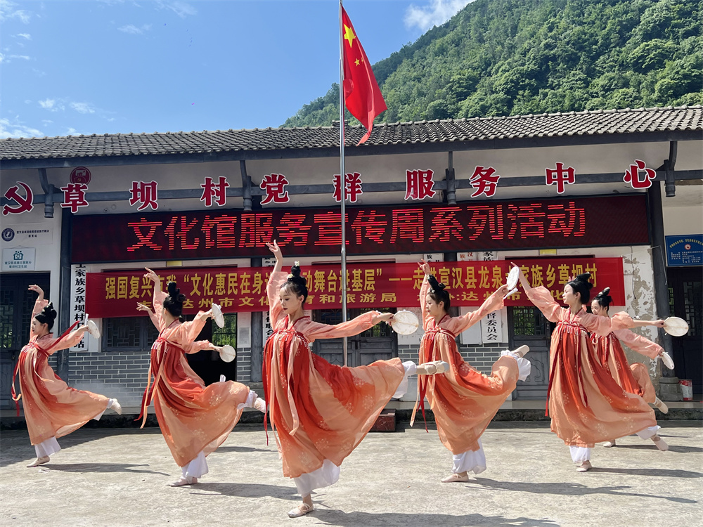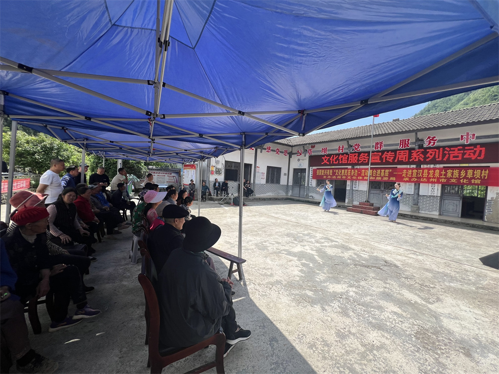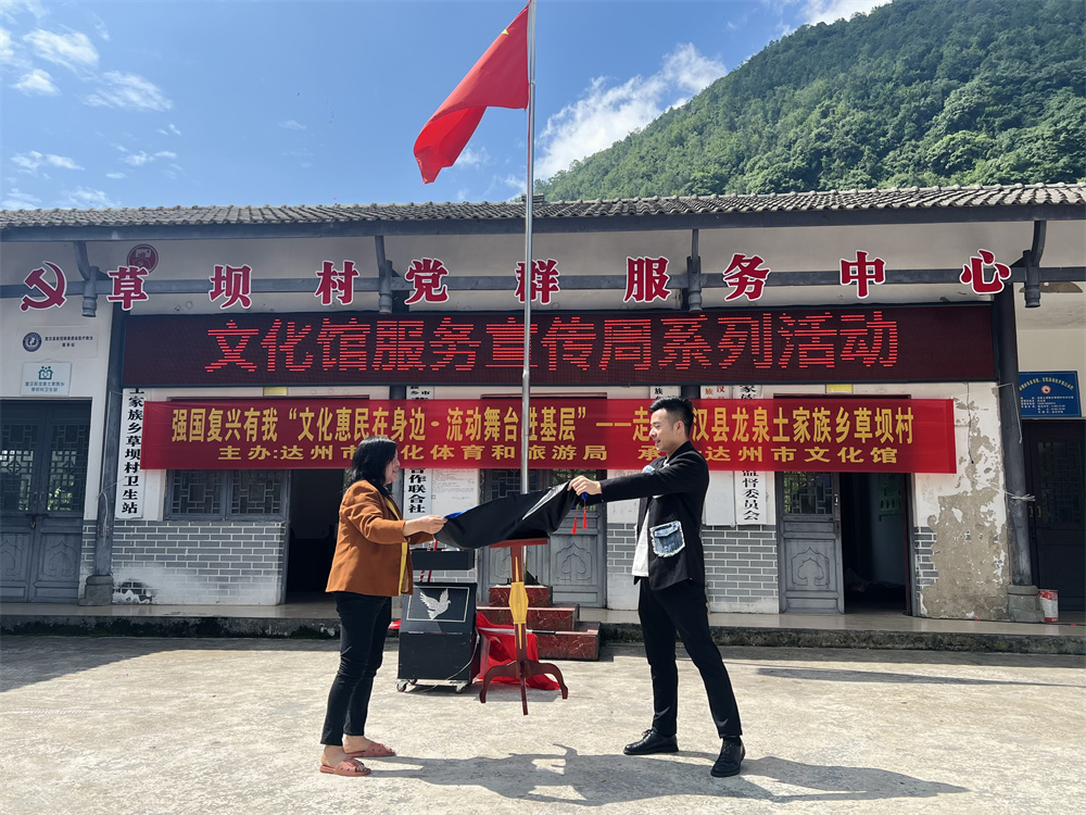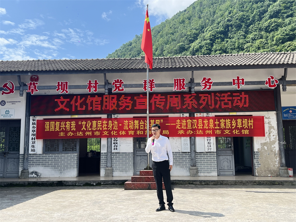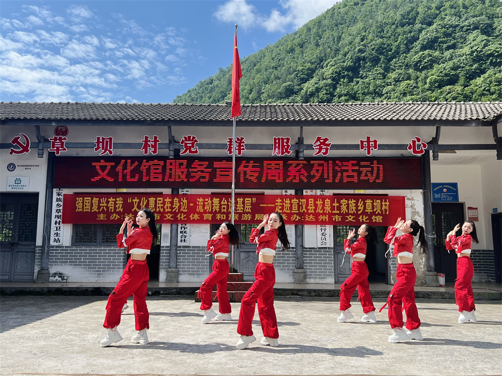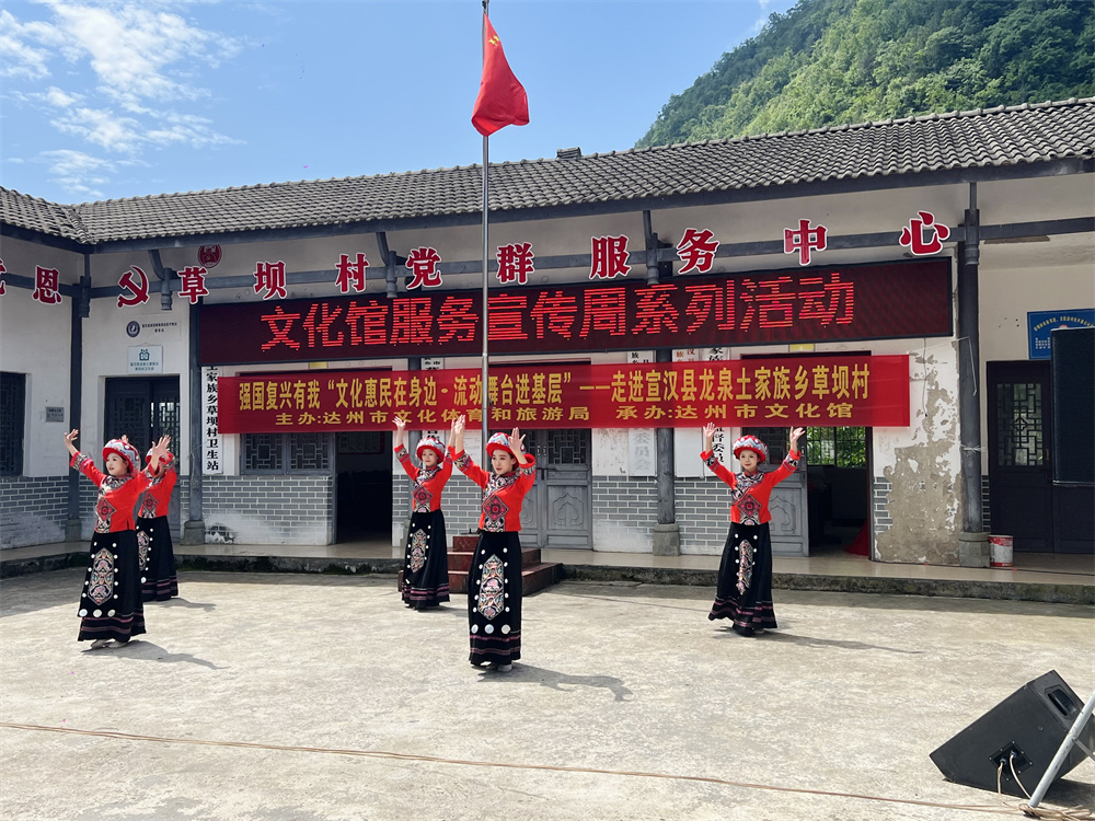 为继续扩大文化馆服务宣传的广度和深度,持续推进文化惠民工作走深走实,5月22日,由达州市文化体育和旅游局主办,达州市文化馆承办的文化馆服务宣传周系列活动之“文化惠民在身边·流动舞台进基层”文艺演出活动走进了对口帮扶的宣汉县龙泉土家族乡草坝村,为当地村民带来了丰富多彩的文化盛宴。