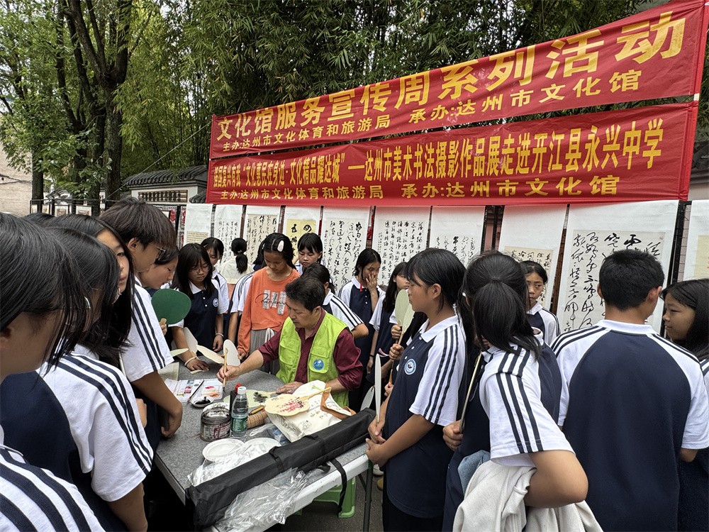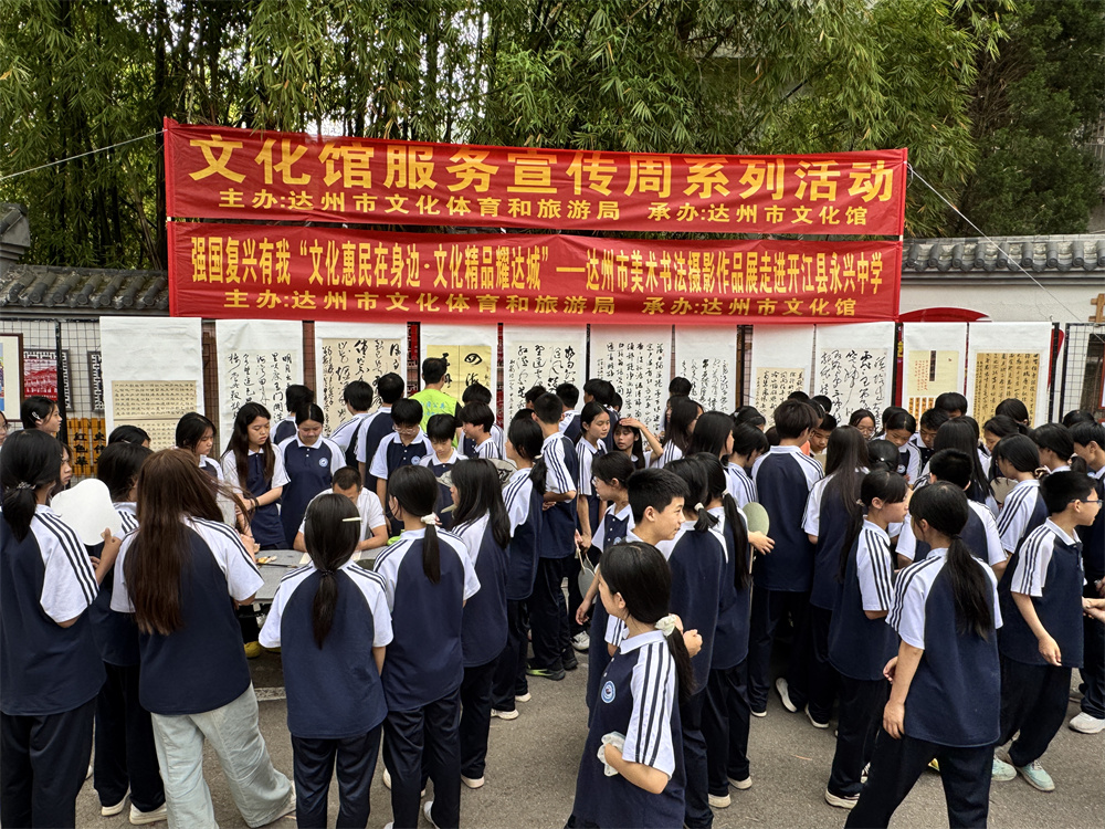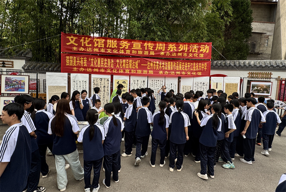时值2025年全国文化馆服务宣传周,5月23日由达州文化体育和旅游局主办、达州市文化馆承办的一场别具一格的美术书法摄影展走进开江县永兴中学,为师生们呈现了多视觉的文化盛宴。
