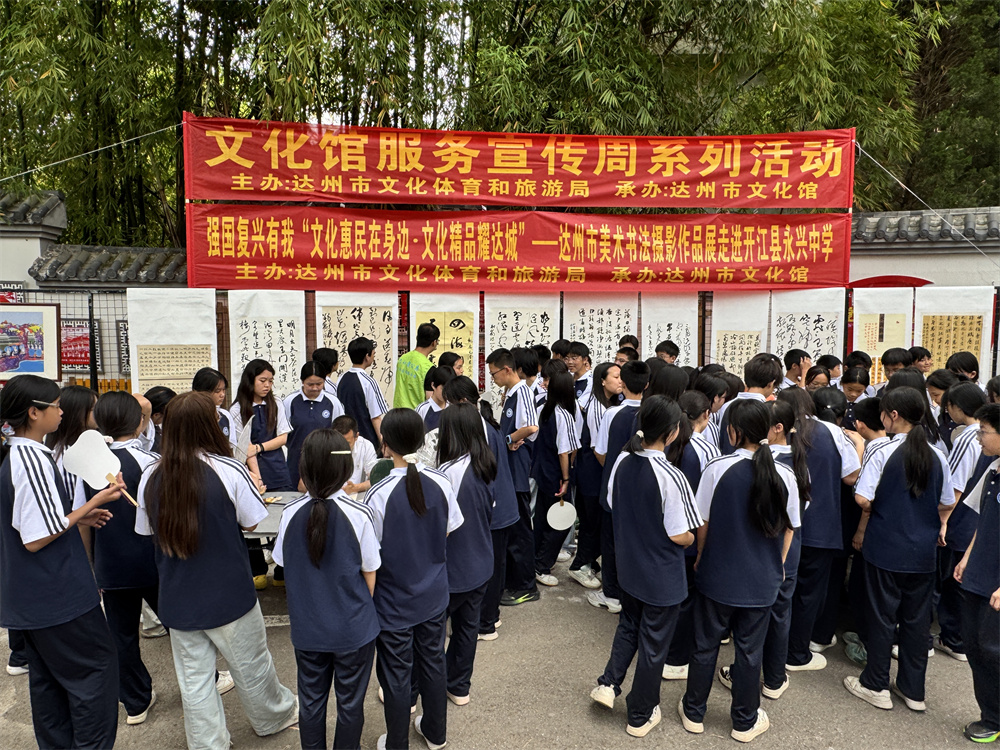 5月23日,一场美术书法摄影展走进开江县永兴中学,展出了一系列气韵生动的美术、书法、摄影作品。现场,志愿者为师生们进行讲解;书画老师挥毫泼墨,展示创作过程;摄影老师为同学们拍照留影、打印照片。此次美术书法摄影展进校园作为文化馆服务宣传周的重要组成部分,使艺术审美教育深度融入校园场域,有效丰富了校园文化供给,也为学生们打开了通往艺术殿堂的大门,播种下美育的种子。