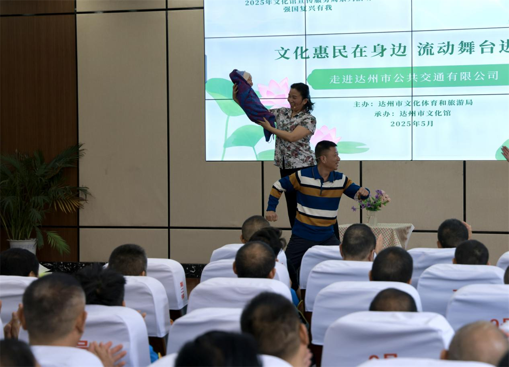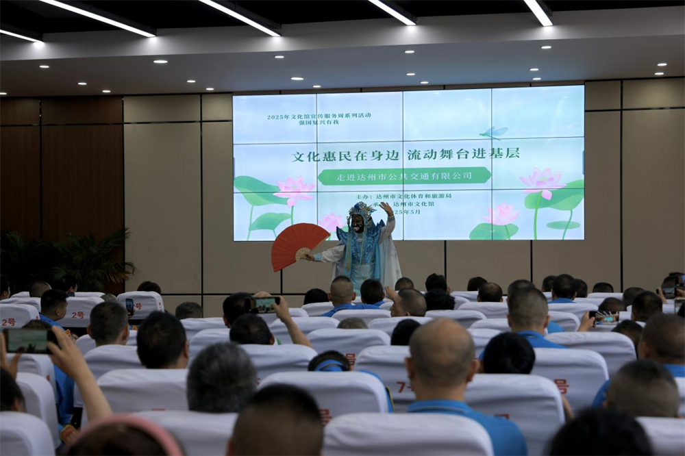 5月13日,由达州市文化体育和旅游局主办、达州市文化馆承办的“文化惠民在身边 流动舞台进基层”活动走进达州市公共交通有限公司。歌舞、小品、川剧变脸等精彩节目轮番上演,为常年奋战在一线的公交驾驶员们送上了一场精神大餐。本次文化馆服务宣传周专场文艺演出,旨在广泛凝聚行业力量,着力塑造新时代文化馆开放、融合、创新的形象,提高公众知晓度、参与度和美誉度。