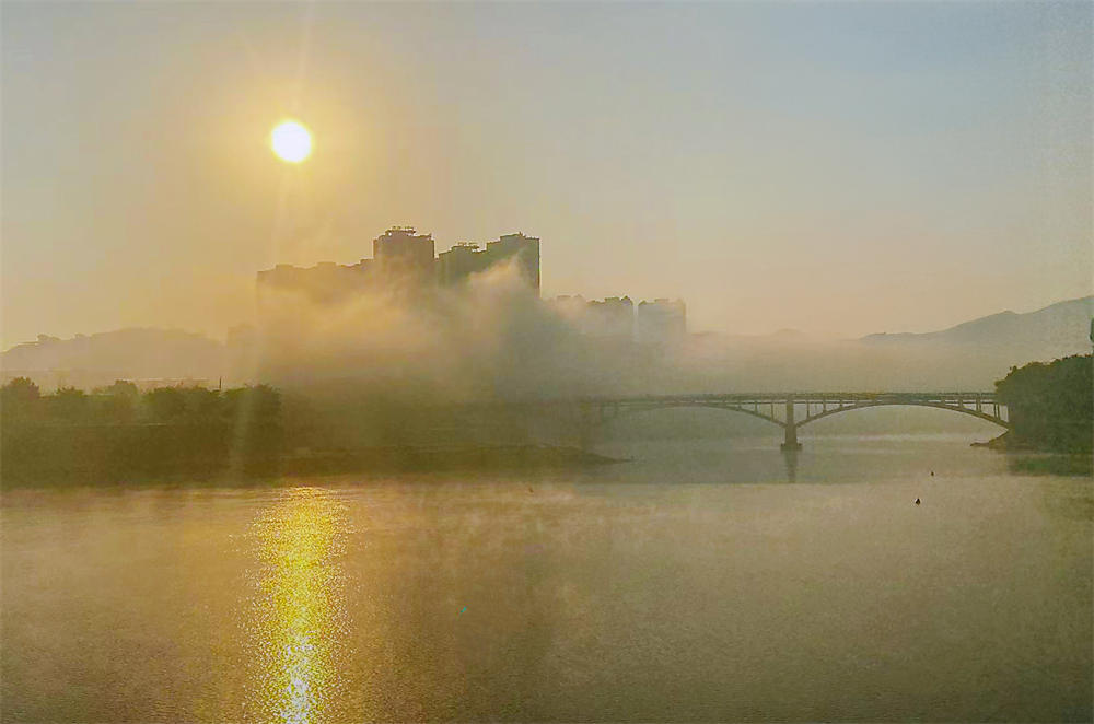 《洲河桥畔晨雾》杨平