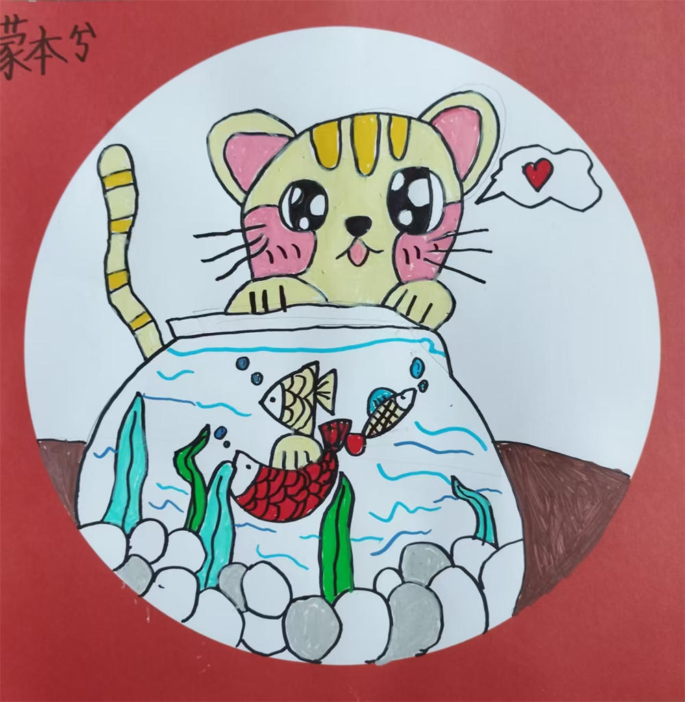 《爱吃鱼的小猫》蒙本兮 7岁 指导教师:周小勤