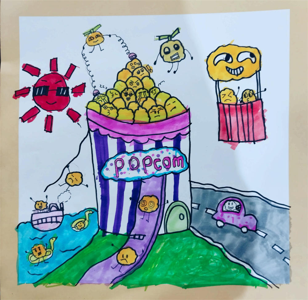 《爆米花逃跑记》 胡羽彤 7岁 指导教师:周小勤