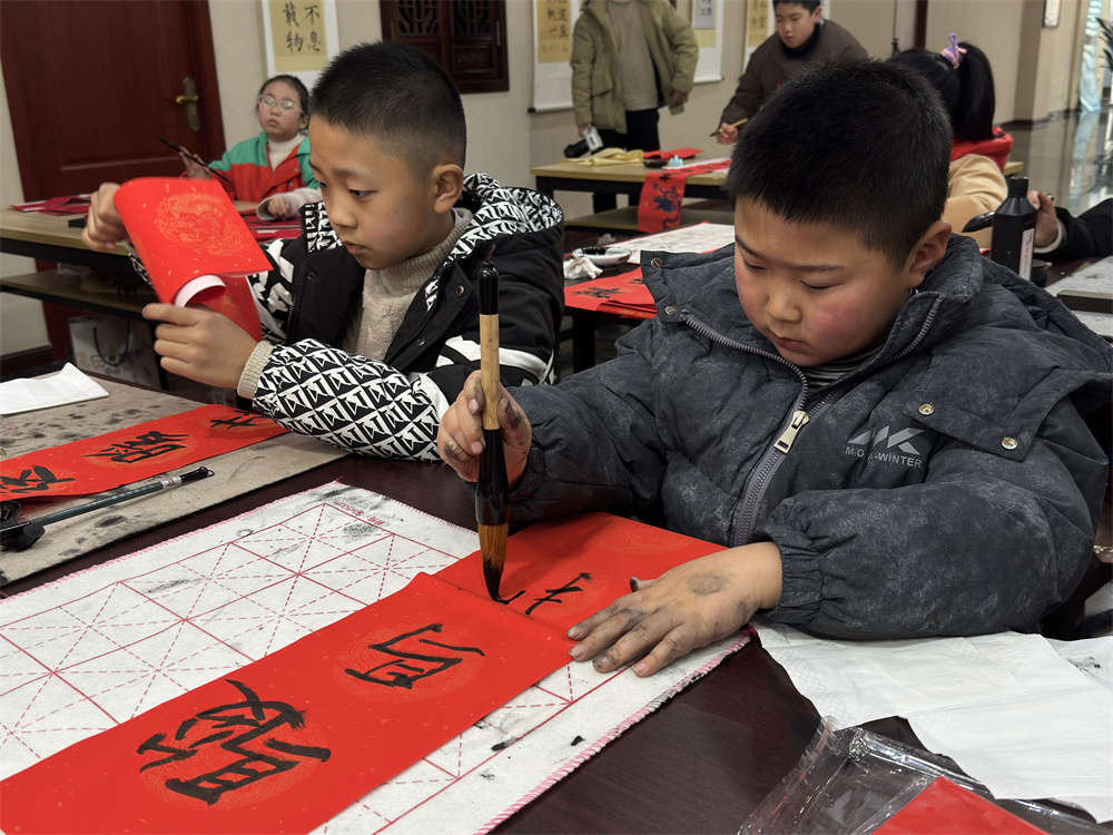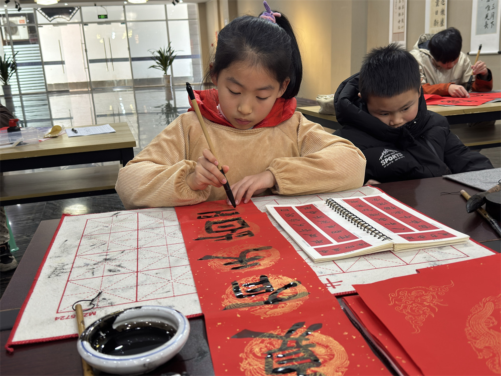 课程由市文化馆精心设计,从基础笔画到完整作品,循序渐进。小学员们从执笔、运笔学起,逐步掌握了基本笔画与结构。不仅学会了规范的书写方法,更通过书写“福”字、春联等年味作品,亲身感受了传统文化的魅力。课堂上专注的眼神,宣纸上日益工整的字迹,都是成长的印记。