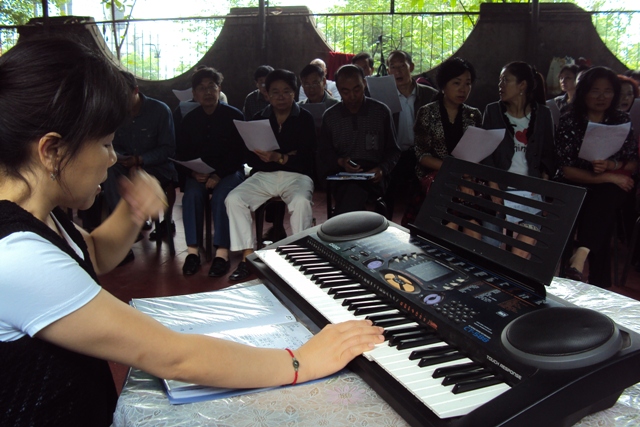 5月16上午,我馆音乐专业人员王涛对准备参加中共达州市委宣传部主办的为纪念建党90周年“达州十大杰出人物暨百名优秀儿女”评选活动颁奖暨歌咏会的老年合唱方队进行了免费培训。该方队由老干部合唱团、春天艺术团、老年大学、巴山红叶艺术团等团队266人组建,他们演唱的歌曲是由市委副书记胥健作词、市音协主席梅光辉作曲的《怎能忘记》.