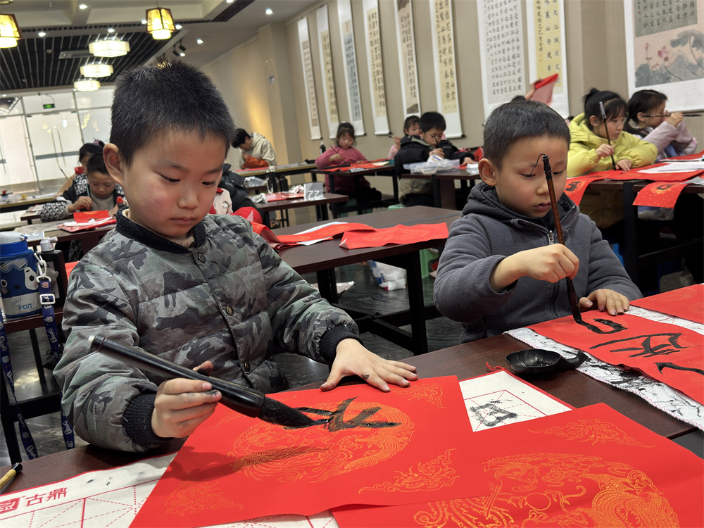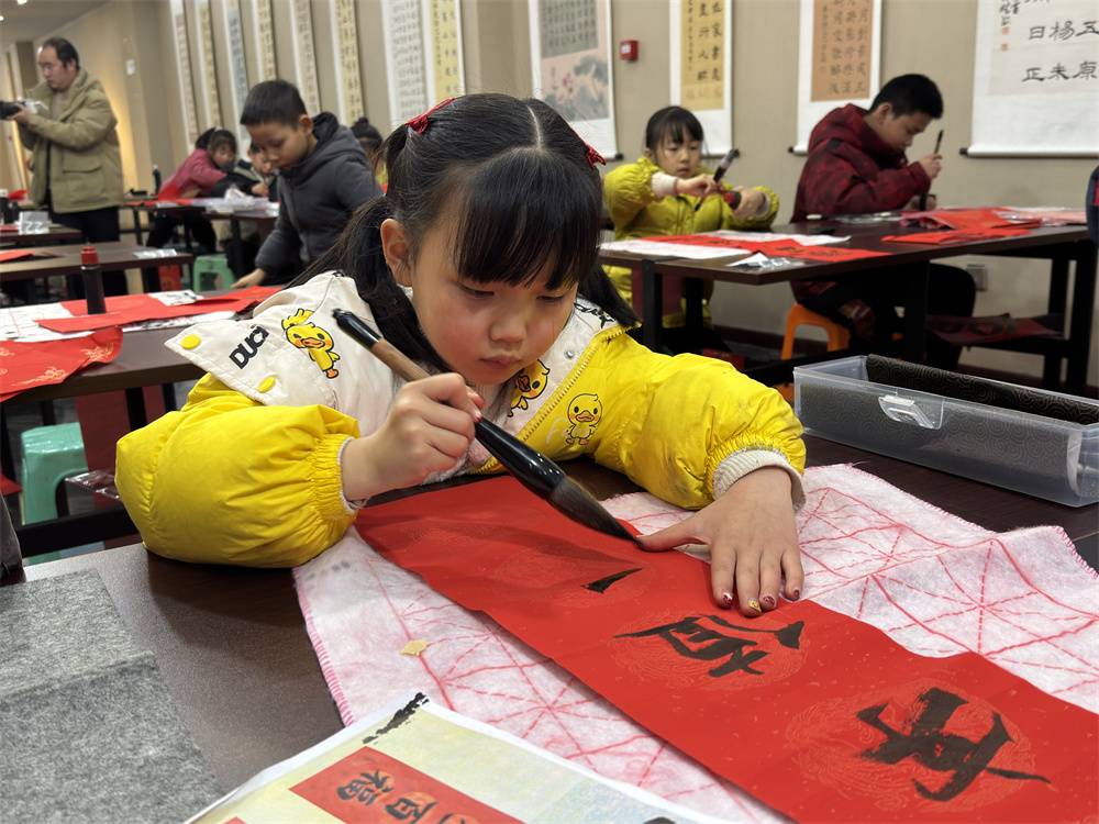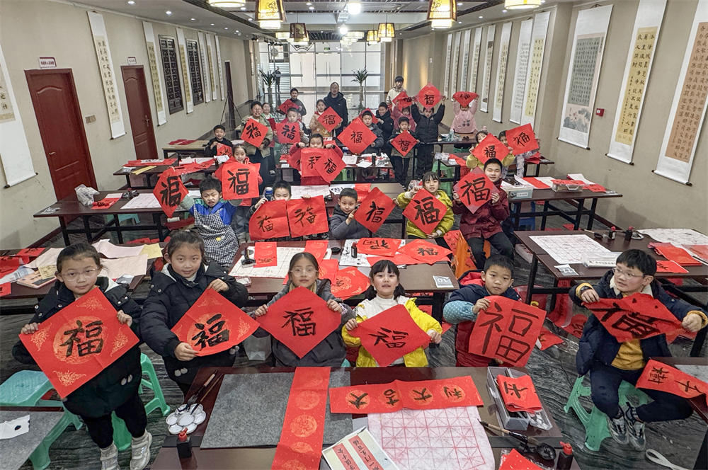 课程由市文化馆精心设计,从基础笔画到完整作品,循序渐进。小学员们从执笔、运笔学起,逐步掌握了基本笔画与结构。不仅学会了规范的书写方法,更通过书写“福”字、春联等年味作品,亲身感受了传统文化的魅力。课堂上专注的眼神,宣纸上日益工整的字迹,都是成长的印记。