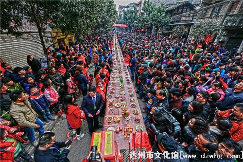 元宵节开江民众摆1500余桌百家宴 上演“龙灯传杯”