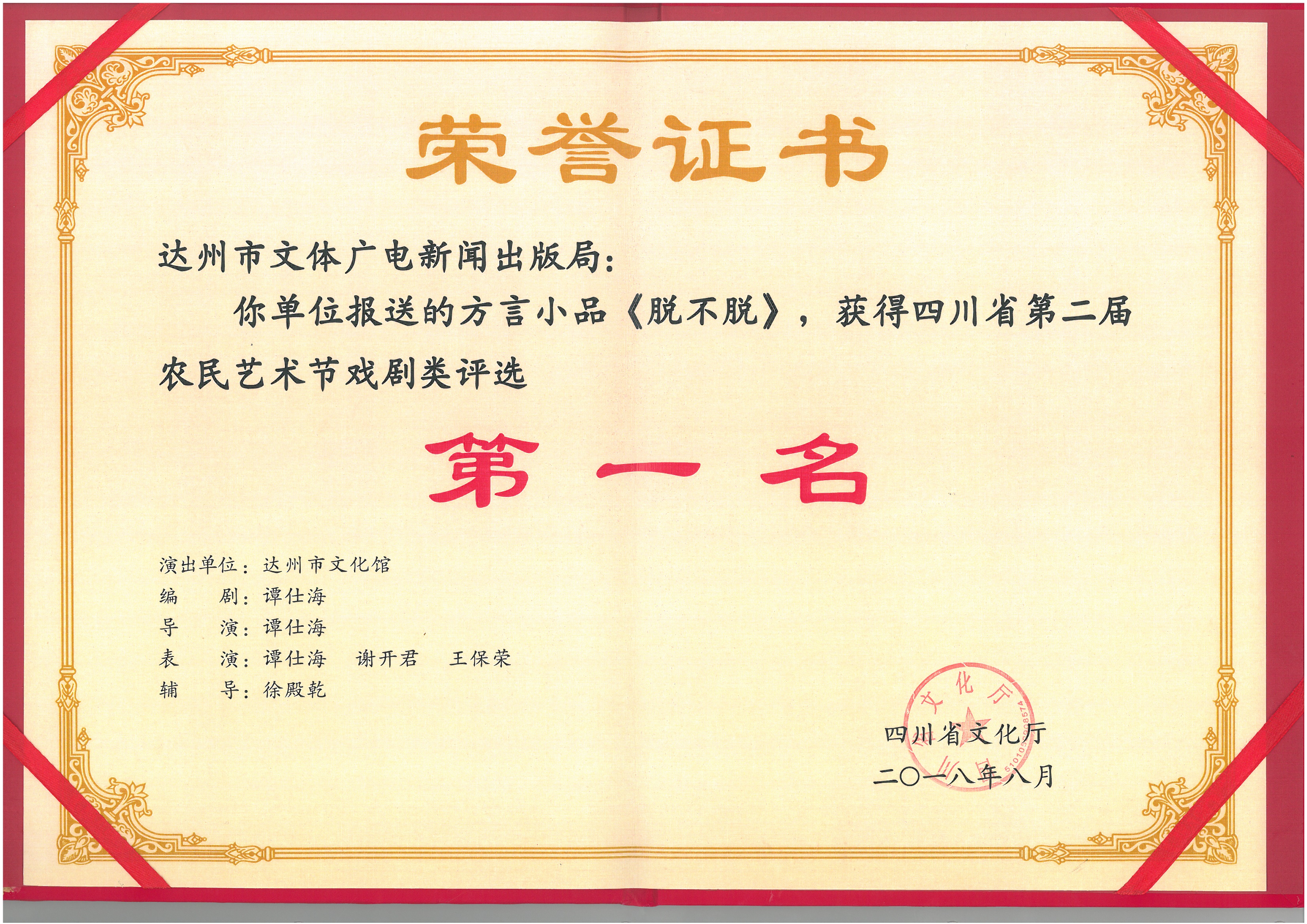 达州市文化馆方言小品《脱不脱》入围群星奖