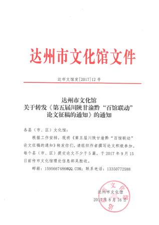关于转发《川陕甘渝黔“百馆联动”论文征稿的通知》的通知