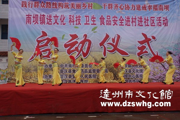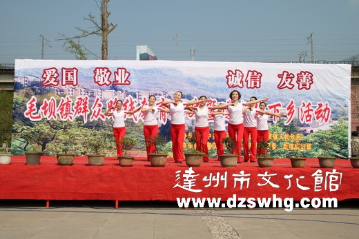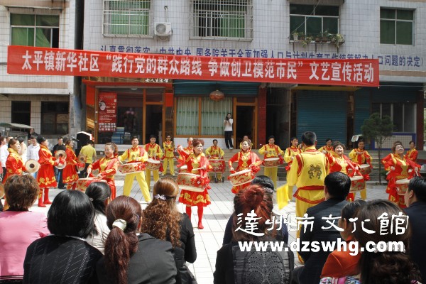 万源市文化馆专业干部指导社区开展“践行党的群众路线,争做创卫文明市民”文艺宣传活动