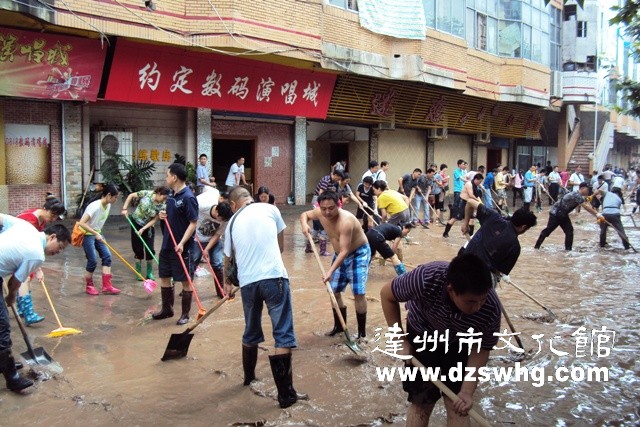 我馆全体职工参加滨河路抗洪救灾工作