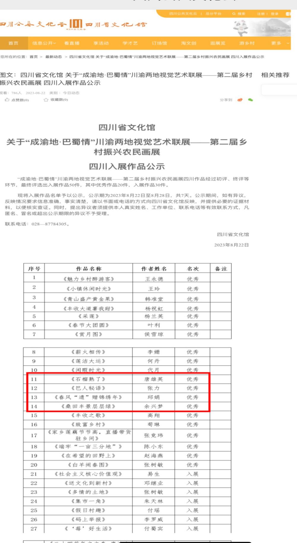 喜讯!达州市文化馆组织推荐4件美术作品荣获“成渝地·巴蜀情”川渝两地视觉艺术联展——第二届乡村振兴农民画展优秀奖