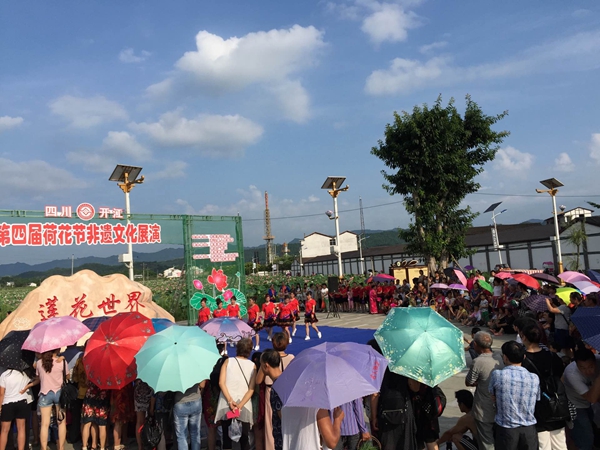 据悉,四川省第八届乡村文化旅游节(夏季·分会场)暨2017年四川·开江第四届荷花节非遗文化展演周活动由中共开江县委、开江县人民政府主办,县委宣传部、县文广新局、县旅游局承办,县文化馆、普安镇等单位协办。在7月、8月每周六、周日早7:30-9:00游客较为集中的时段,分14场活动来集中展示开江的非遗文化。