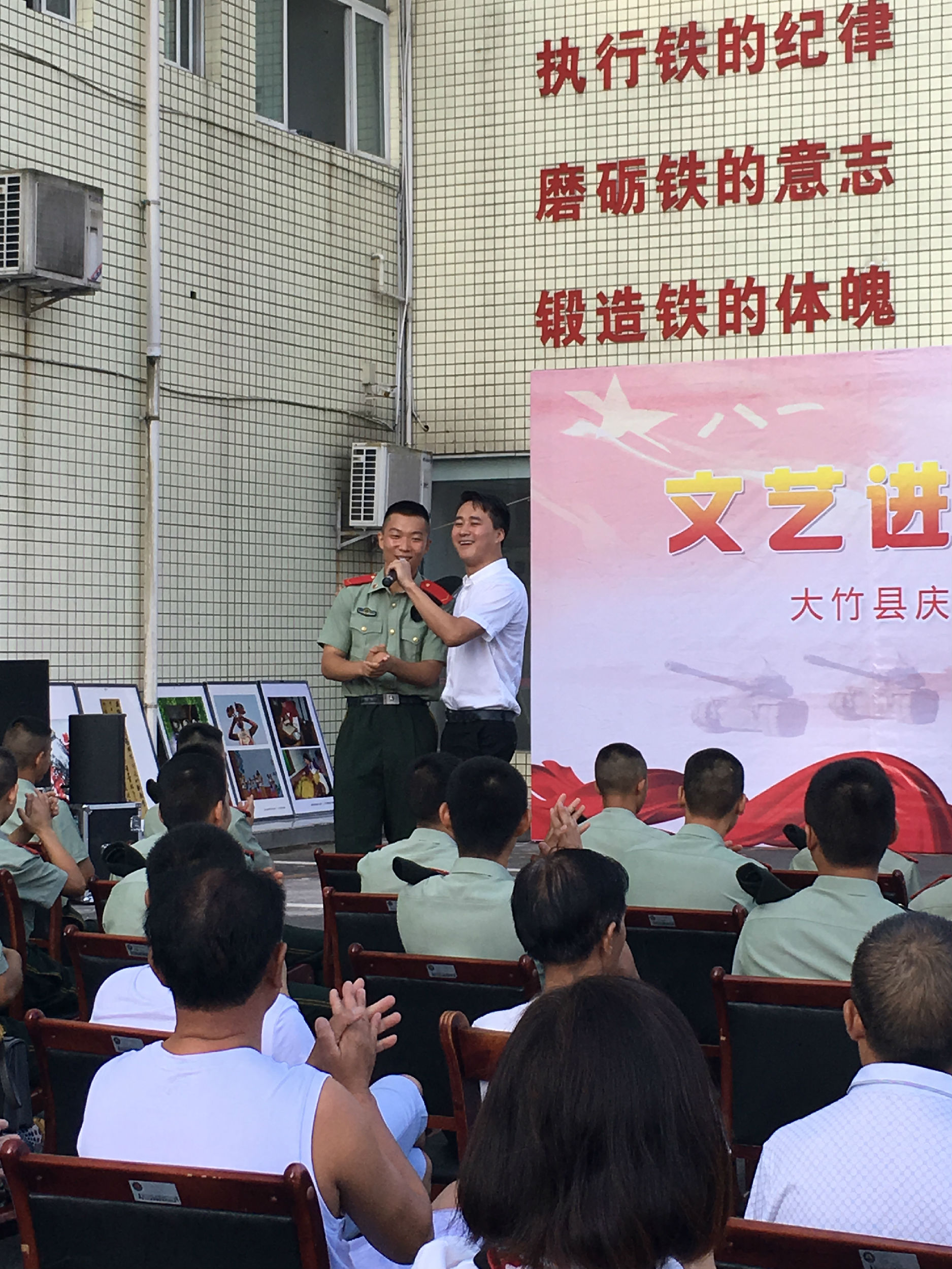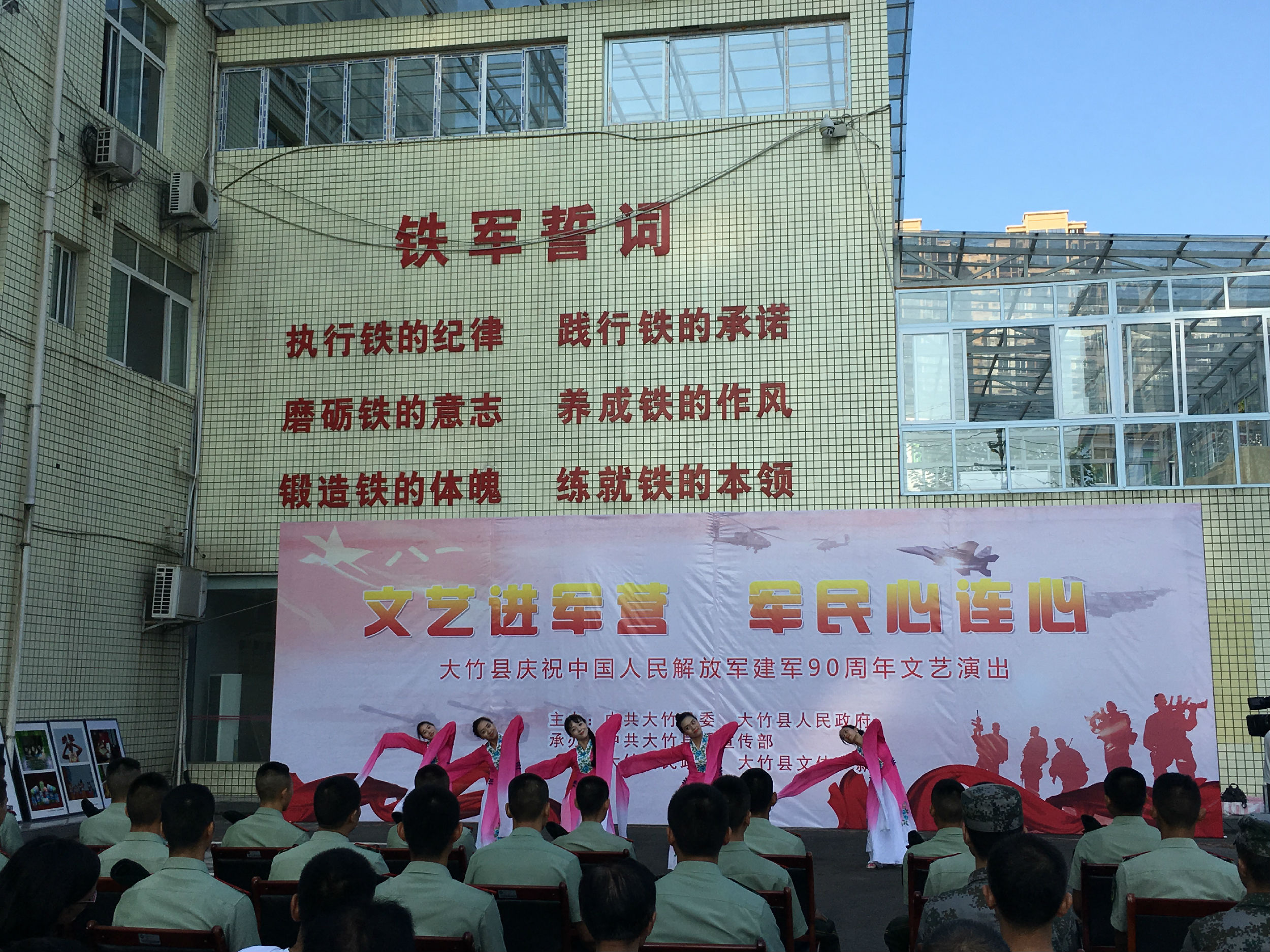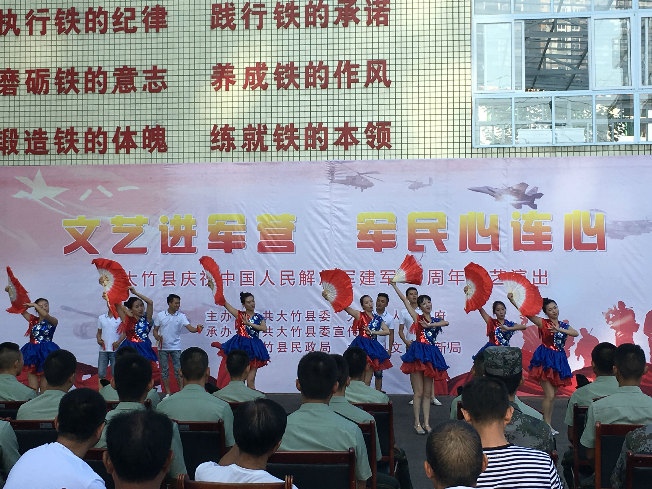 31日上午,由中共大竹县委、大竹县人民政府主办,中共大竹县委宣传部、大竹县民政局、大竹县文体广新局承办的文艺进军营·军民心连心庆祝中国人民解放军建党90周年文艺演出在大竹县消防队举行。