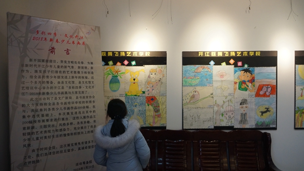 •       新开园圃甜甜日,芽发方畦处处春。为展示新时代开江少年儿童的新气象、新面貌,新作为,激发孩子们潜在的艺术想像力和创造力,给全县的青少年朋友送上新年的祝福,近过一个多月的筹备,由县文化馆、县文化馆文艺培训中心承办的开江县“多彩四季·文化开江”2018年新春少儿书画展于元月22日在县文化馆展览厅展出。
