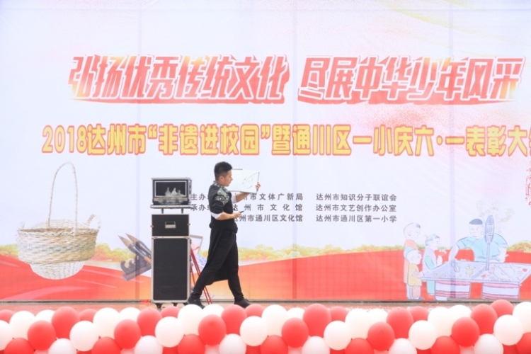 •   为继承和弘扬中华民族优秀传统文化,丰富少年儿童节日文化生活,在六一国际儿童节和2018文化和自然遗产日即将来临之际,达州市文体广新局、达州市知联会、达州市文化馆、达州市创作办公室、通川区文化馆、通川区第一小学于531日联合在通川区一小举办了一场以弘扬优秀传统文化·尽展中华少年风采为主题的2018达州市非遗进校园活动。