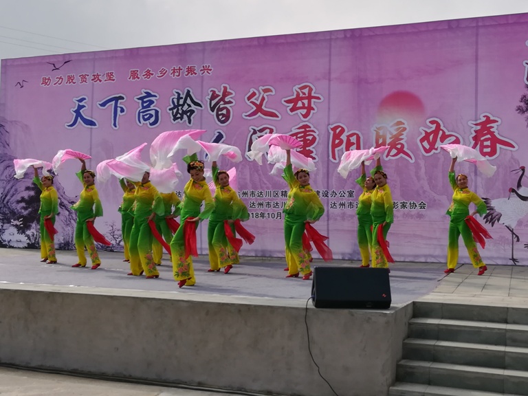 •   2018年10月15日,由达川区委宣传部、达川区文明办、陈家乡党委、政府、达川区文化馆、达川区摄影家协会联合主办的“天下高龄皆父母,人间重阳暖入春”2018重阳节文艺演出在陈家乡大田坝村隆重举行。