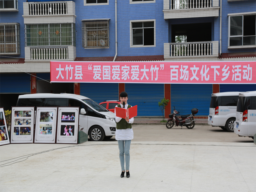 党的十八大以来,大竹县文化馆深入学习贯彻习近平新时代中国特色社会义思想,紧紧围绕县委“1256”战略布局,围绕意识形态工作,利用“百场文化下乡”契机,开展以“爱国、爱家、爱大竹”为主题的“百场文化下乡”活动,把老百姓最喜欢看的文艺演出和展览送到家门口。活动紧扣时代脉博,唱响主旋律,奏出文化宣传最强音。