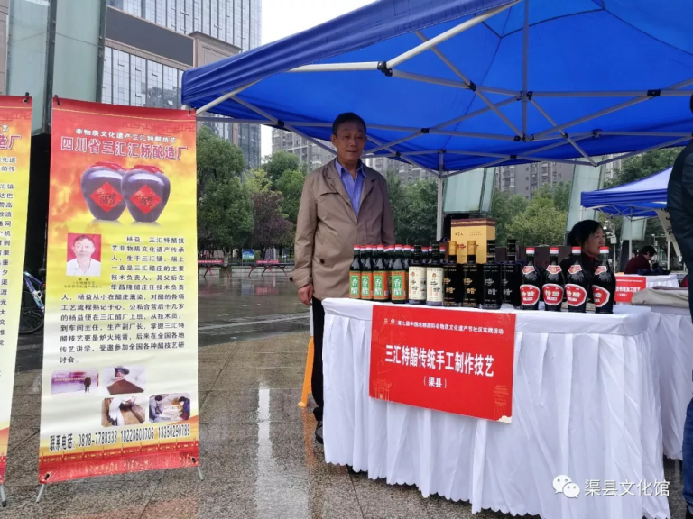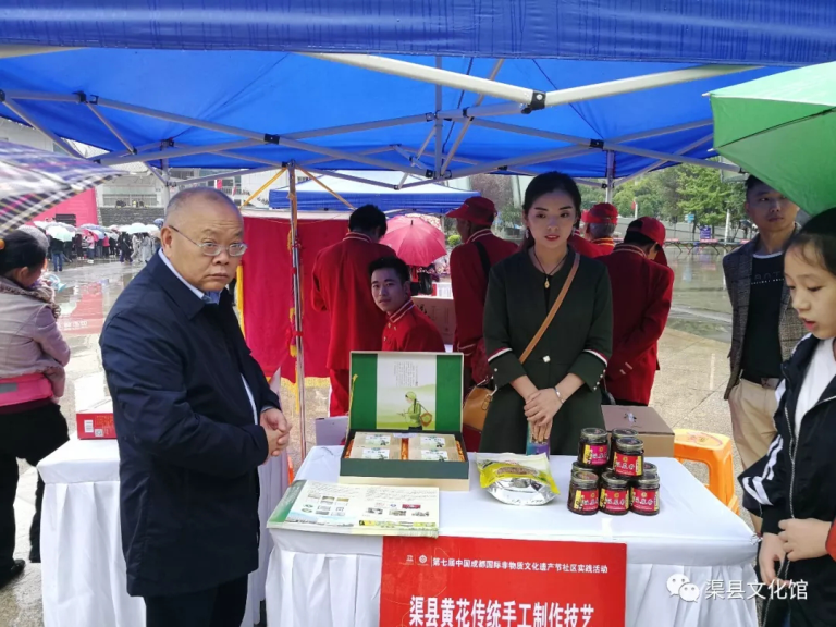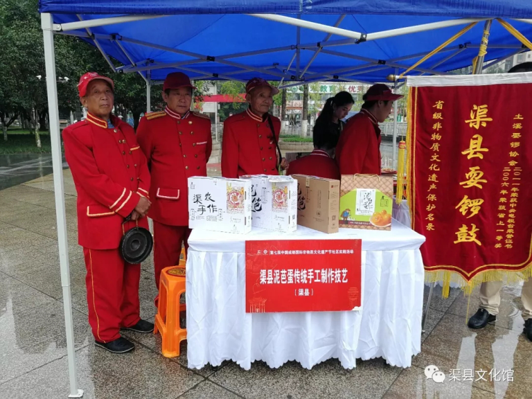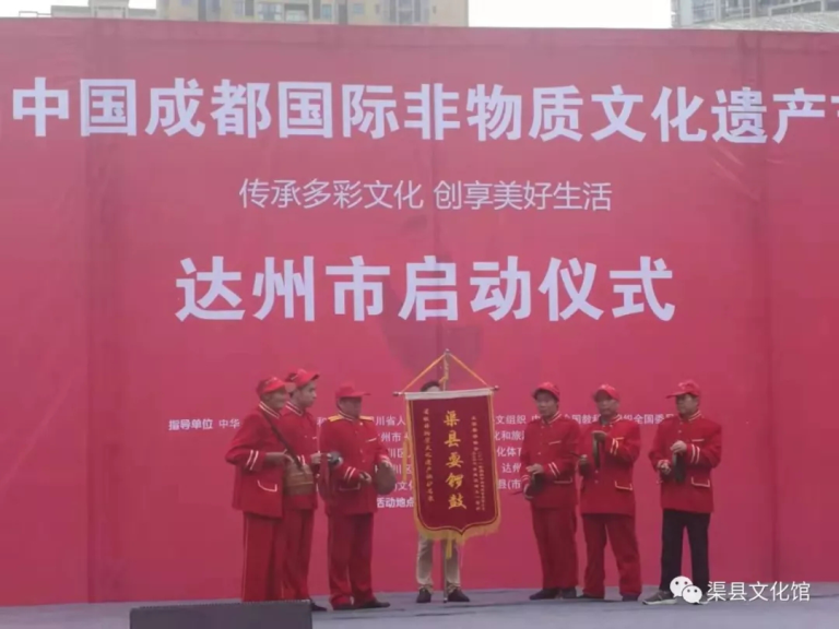 10月11日下午,第七届中国(成都)国际非遗节达州市非遗社区实践活动启动仪式在达川区骑龙社区进行,渠县文化馆组织了国家级非遗名录《渠县刘氏竹编》、省级非遗名录《渠县呷酒酿造技艺》、《渠县耍锣鼓》、县级非遗名录《三汇特醋传统手工制作技艺》《渠县黄花传统手工制作技艺》《渠县泥笆蛋传统手工制作技艺》《段氏龟甲胶制作技艺》等相关非遗项目参加了展(演)活动。