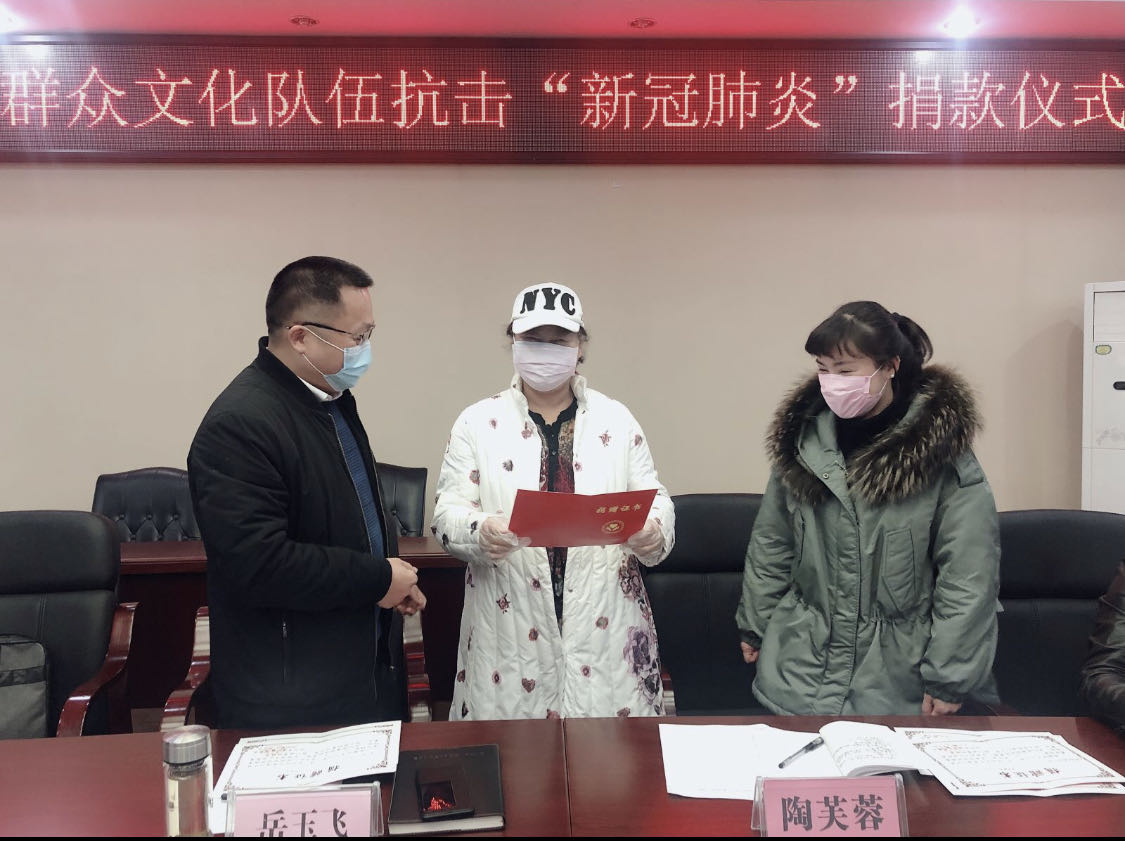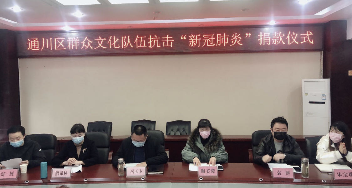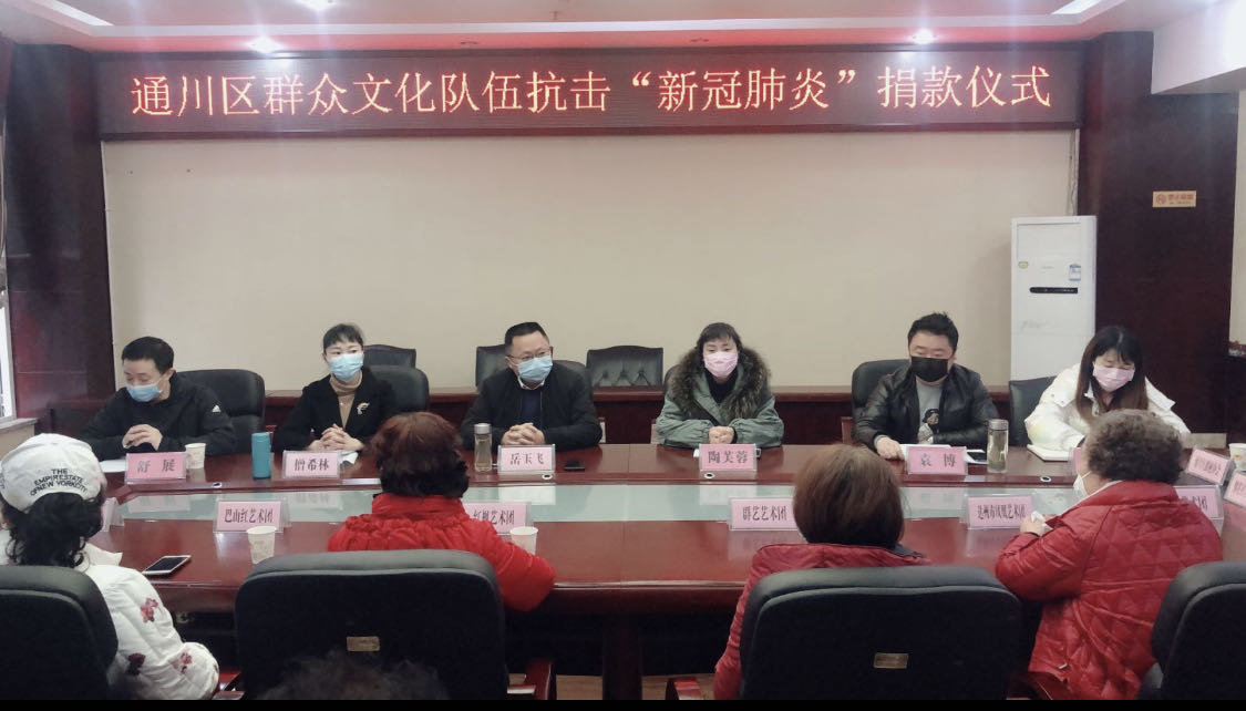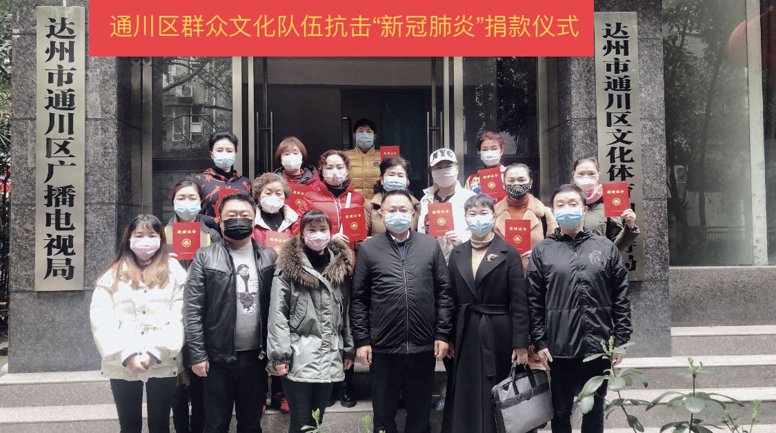 •   自新型冠状病毒肺炎疫情防控工作开展以来,在通川区文化体育和旅游局的指导下,通川区文化馆联合辖区内群众文艺队伍积极行动、主动作为,开展了“我为抗疫献爱心”募捐活动,以实际行动支援疫情防控工作。