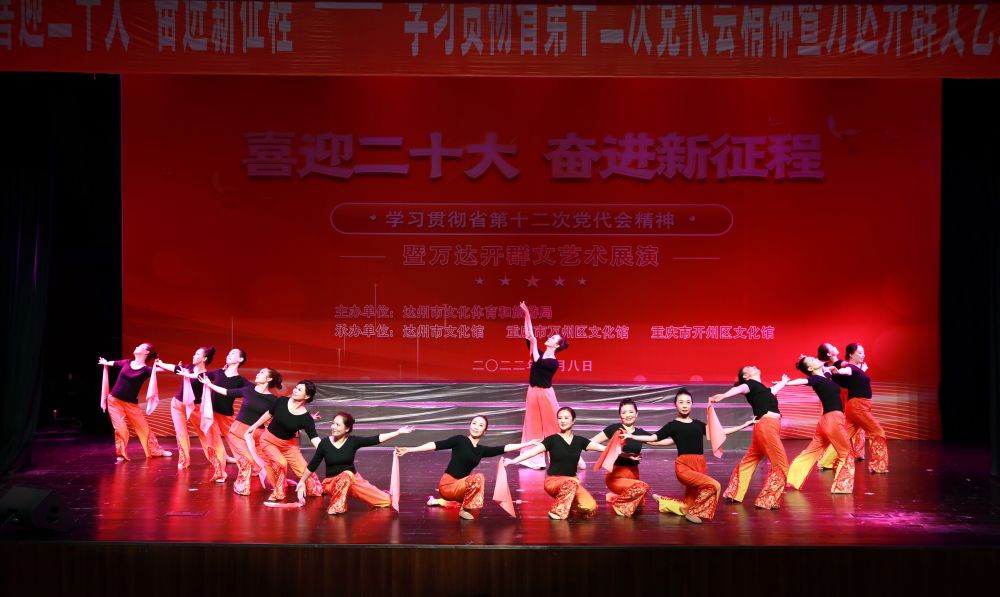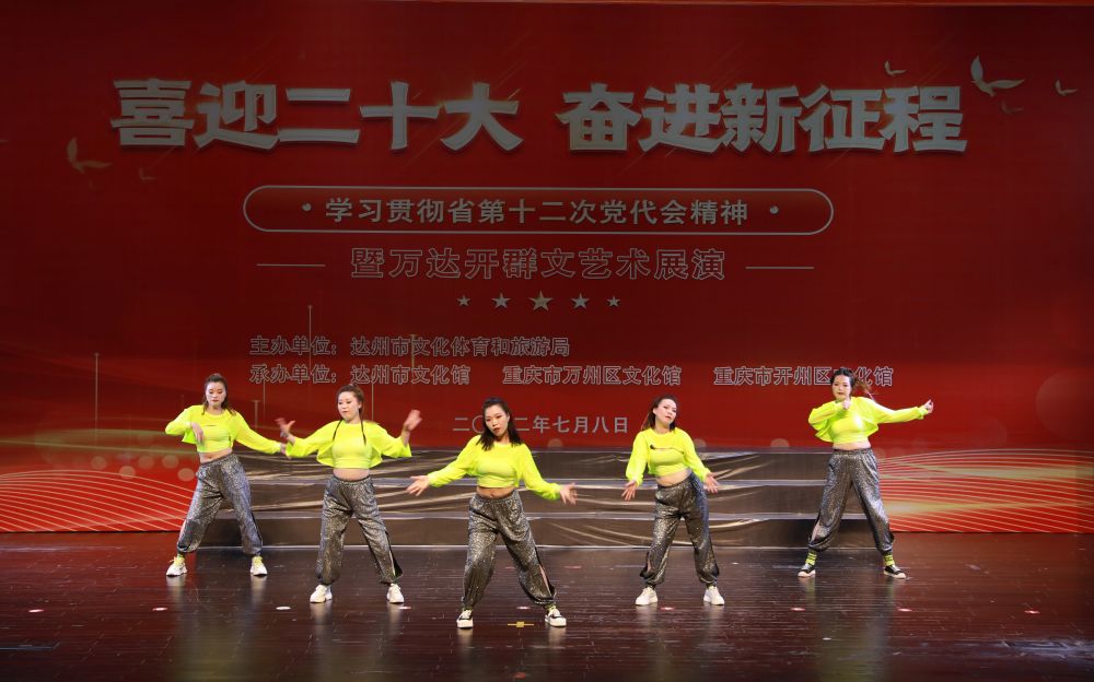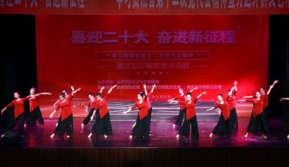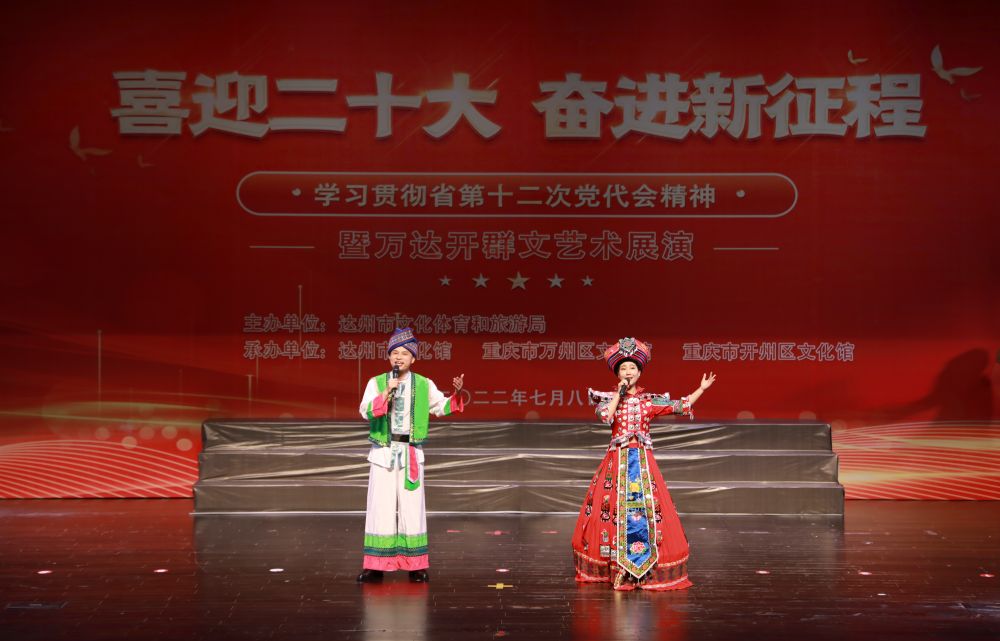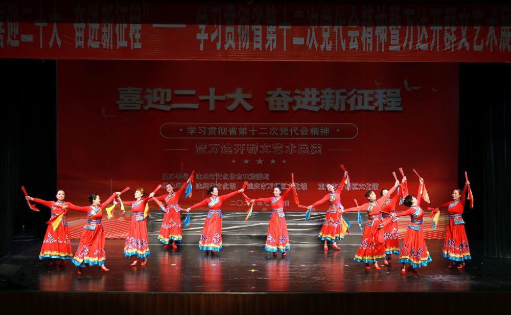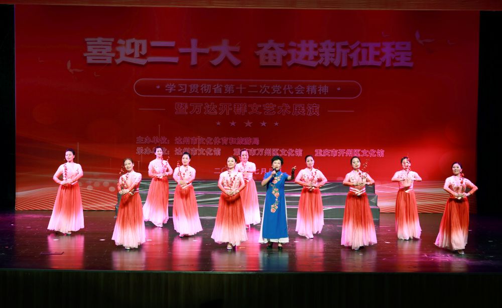 金色七月,满载希望,金色七月,激情飞扬。伴随着扣人心弦的音乐和群众热情的期待,由达州市文化体育和旅游局主办,达州市文化馆、重庆市开州区文化馆、重庆市万州区文化馆联合承办的“喜迎二十大 奋进新征程”——学习贯彻省第十二次党代会精神暨万达开群文艺术展演在巴山大剧院小剧场顺利举行!