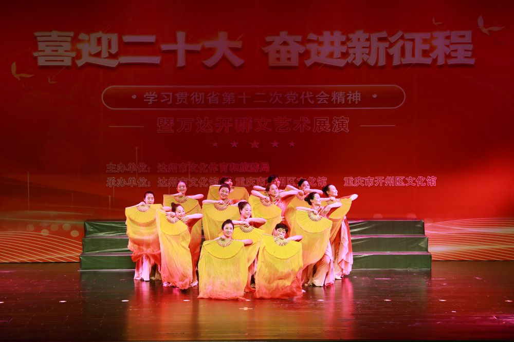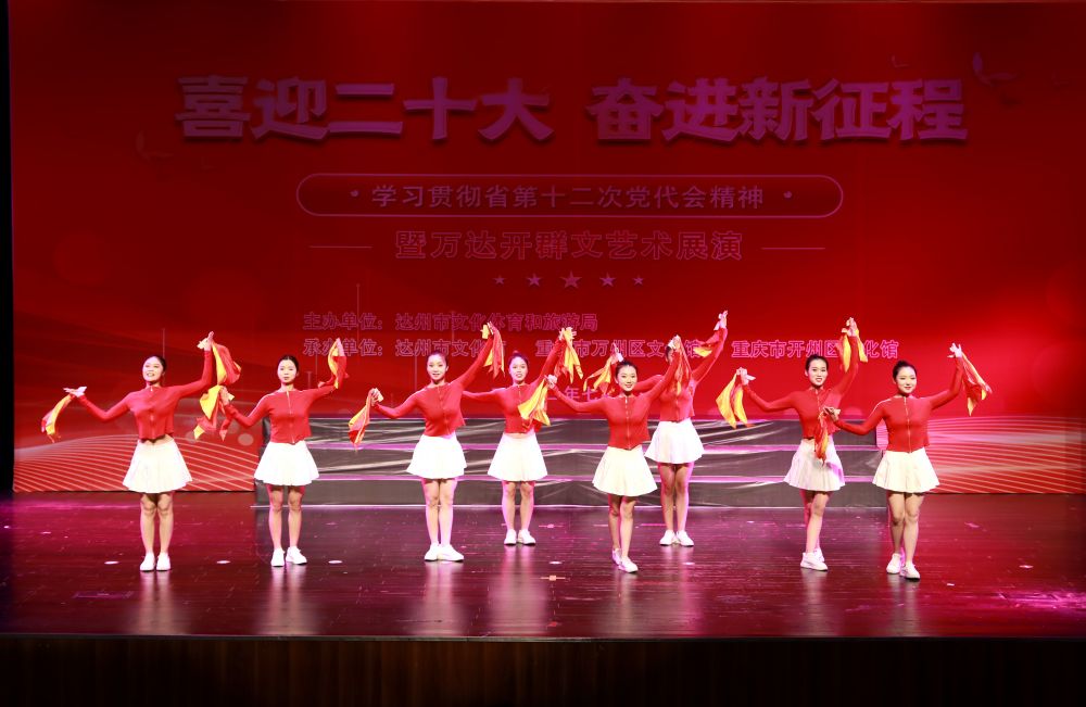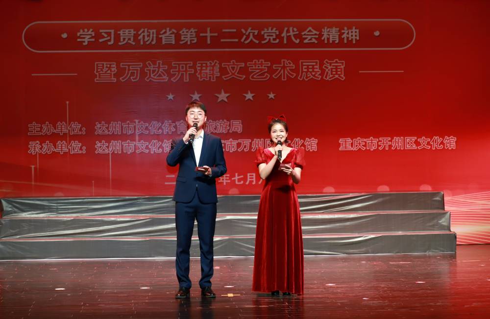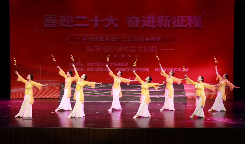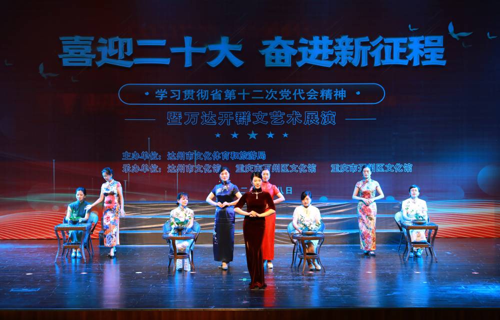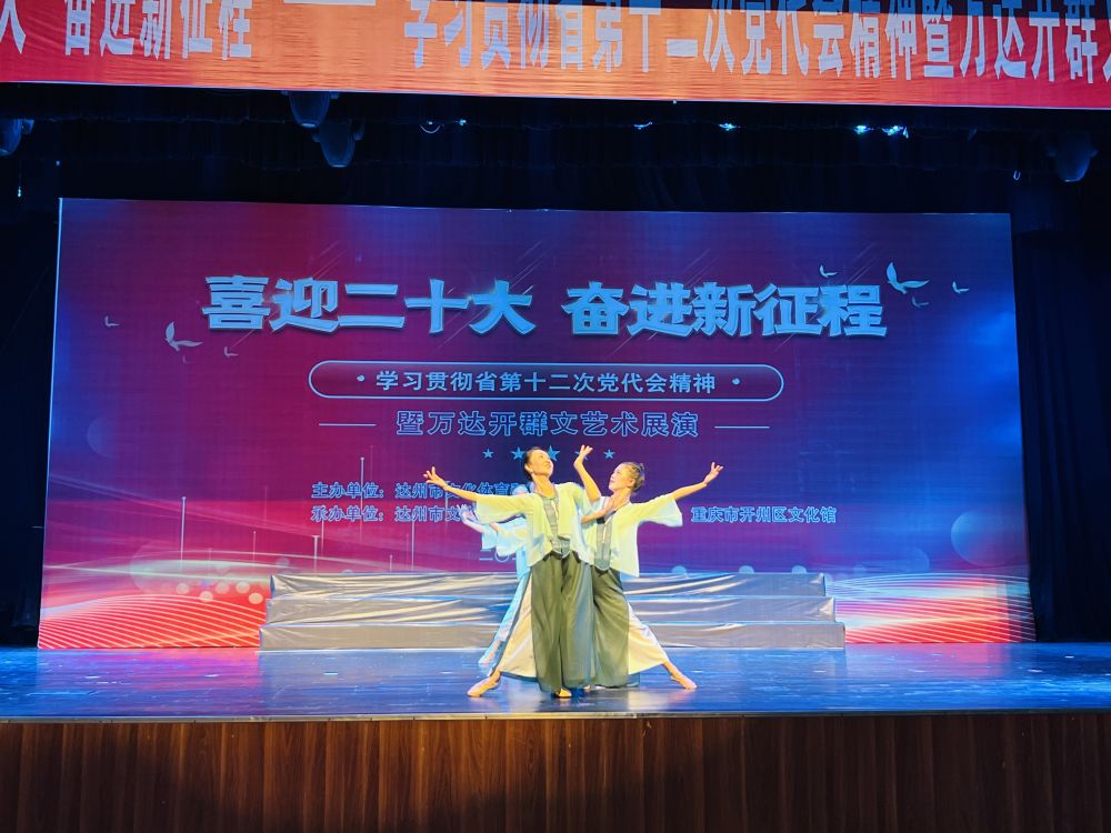金色七月,满载希望,金色七月,激情飞扬。伴随着扣人心弦的音乐和群众热情的期待,由达州市文化体育和旅游局主办,达州市文化馆、重庆市开州区文化馆、重庆市万州区文化馆联合承办的“喜迎二十大 奋进新征程”——学习贯彻省第十二次党代会精神暨万达开群文艺术展演在巴山大剧院小剧场顺利举行!