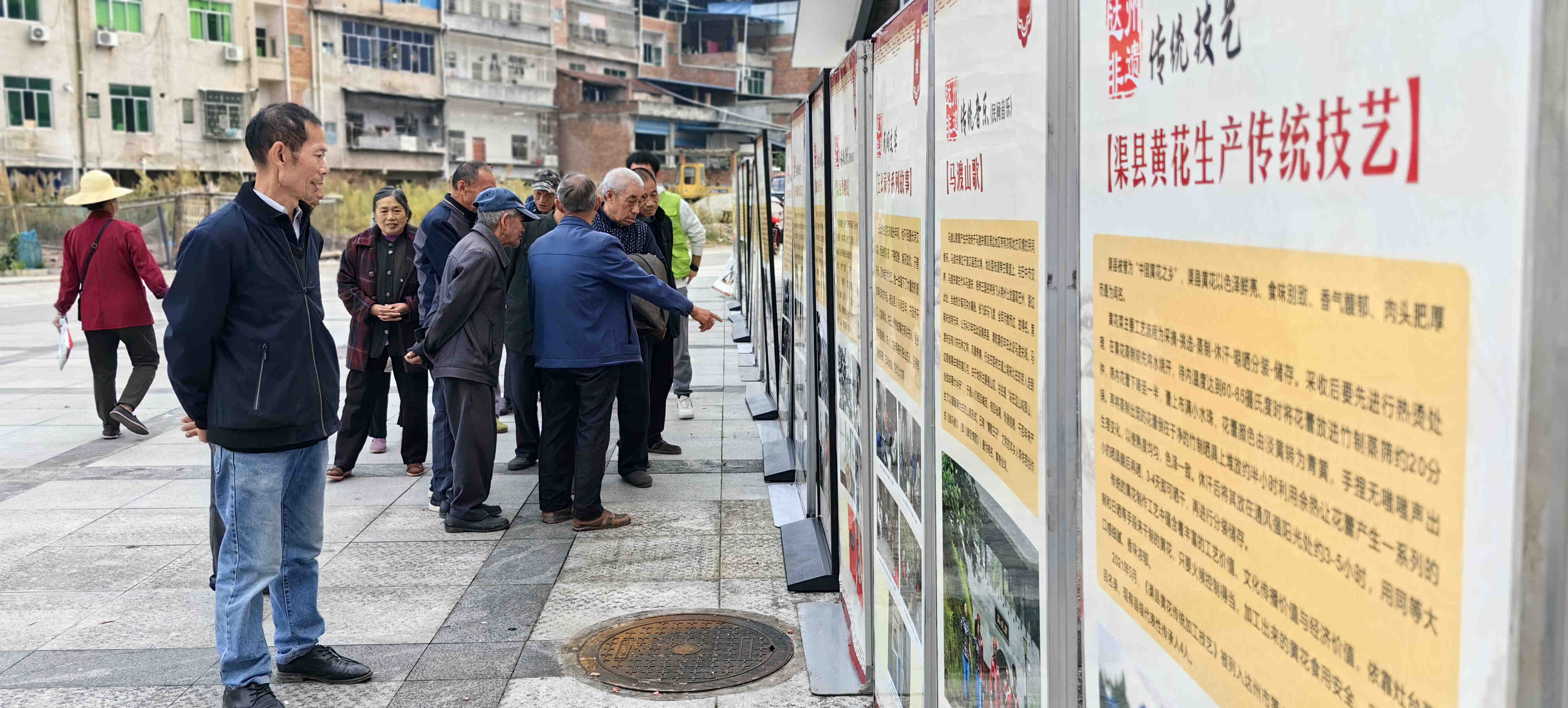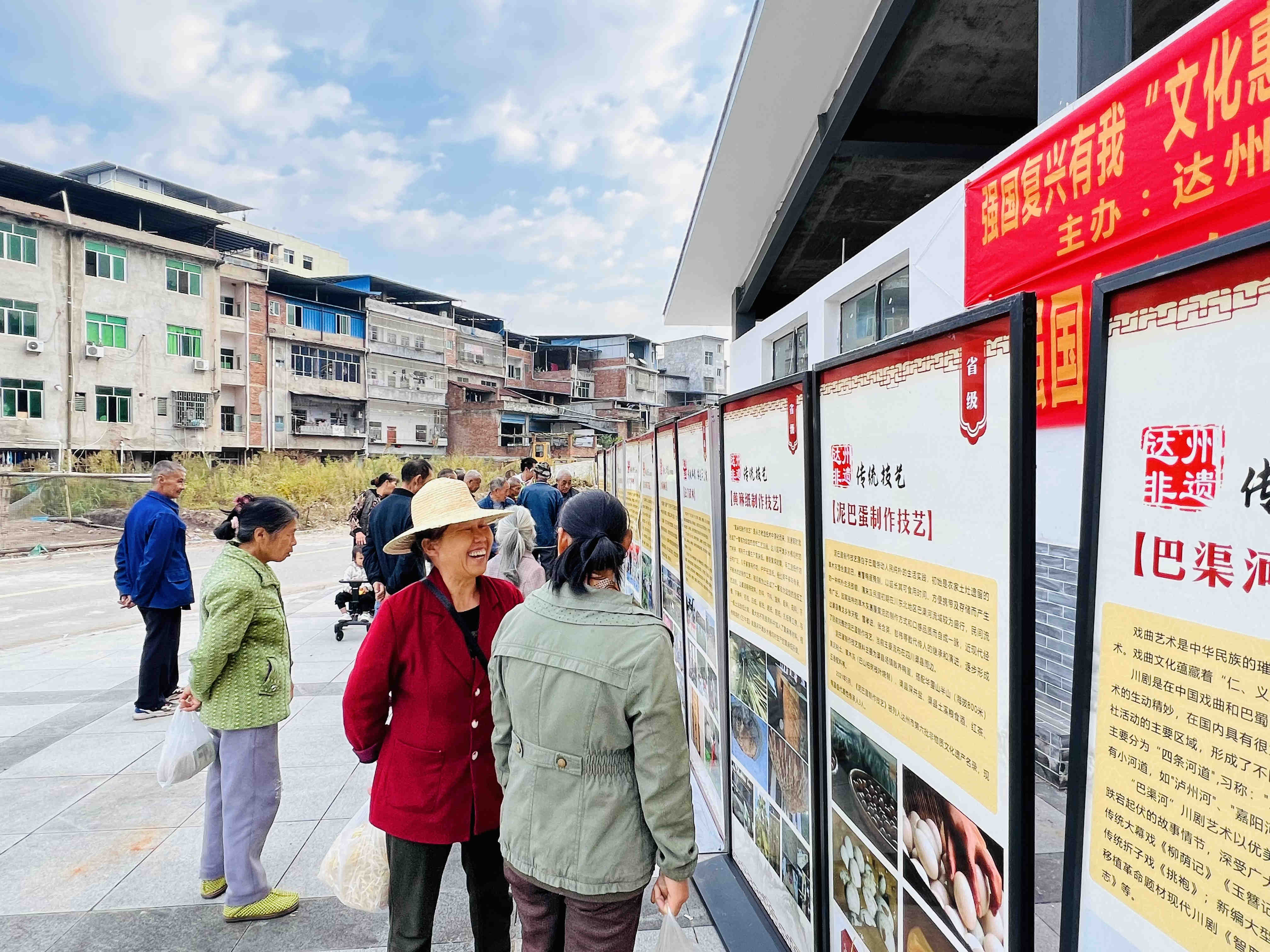 在非遗展板前,当地居民有声有色的议论着,但在他们的印象里,对非遗并没有一个清晰准确的概念。市文化馆工作人员还向大家讲解了达州非遗项目,增强了大家共同保护和传承非遗的意识,让更多的群众认识和了解“非遗”工作。